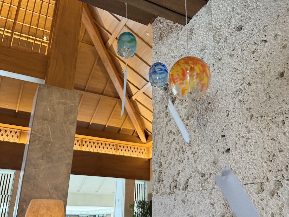 エントランス近くには、ちりりんと涼やかな音を響かせる風鈴が。館内を吹き抜ける静かな風に揺られる風鈴を見ているだけで、心が癒され、暑さや時間も忘れてしまいます。