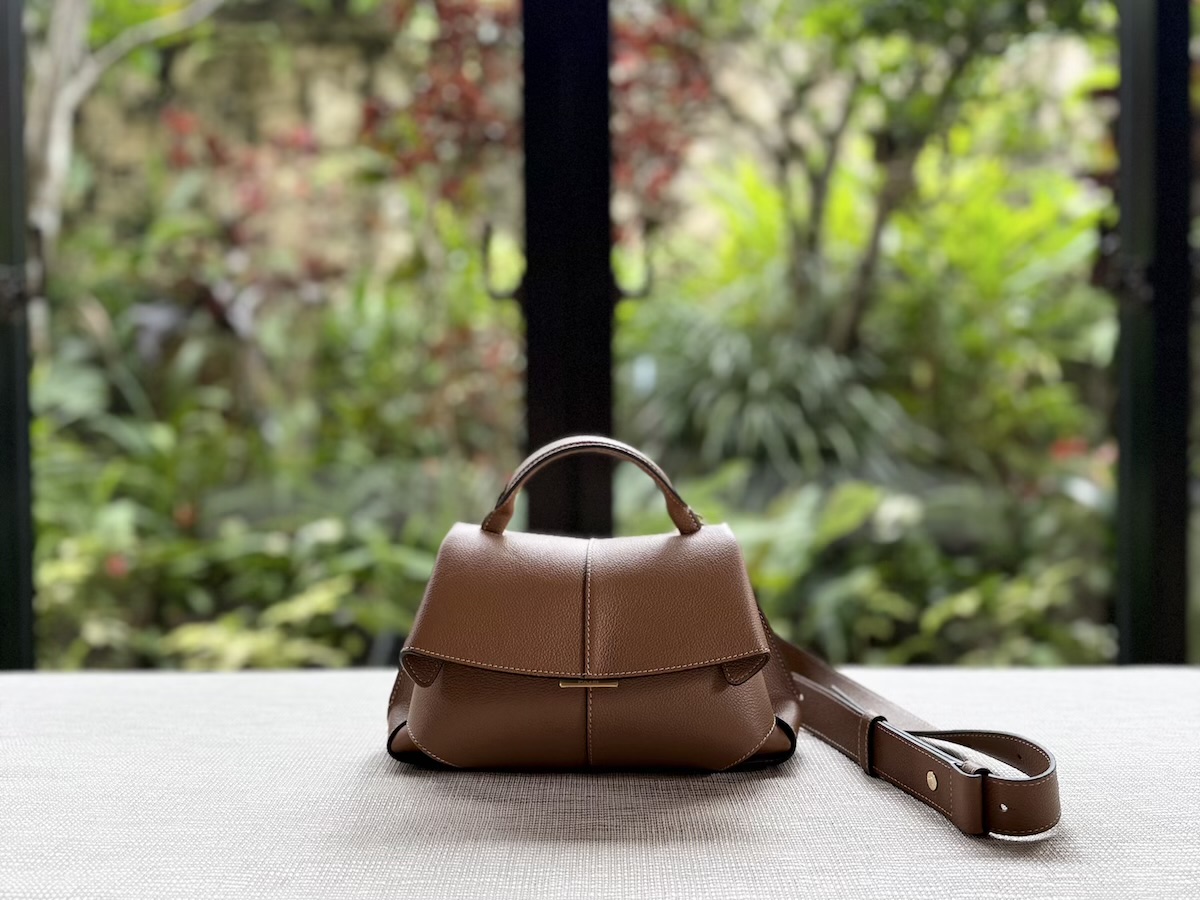 そして、館内の随所に配された緑も圧巻! 大きく葉を広げた南国植物や、苔むしたような石垣の合間から咲く草花。窓辺からふと外を見れば、そこには自然がまるごと切り取られたような景色が広がっている。それだけで、心が元気になって、パワーチャージされたように感じます。あまりにも美しいので、愛用中の「Poléne(ポレーヌ)」のバッグを置いてパチリ。ホテル内のいたるところで物撮影ができそう。