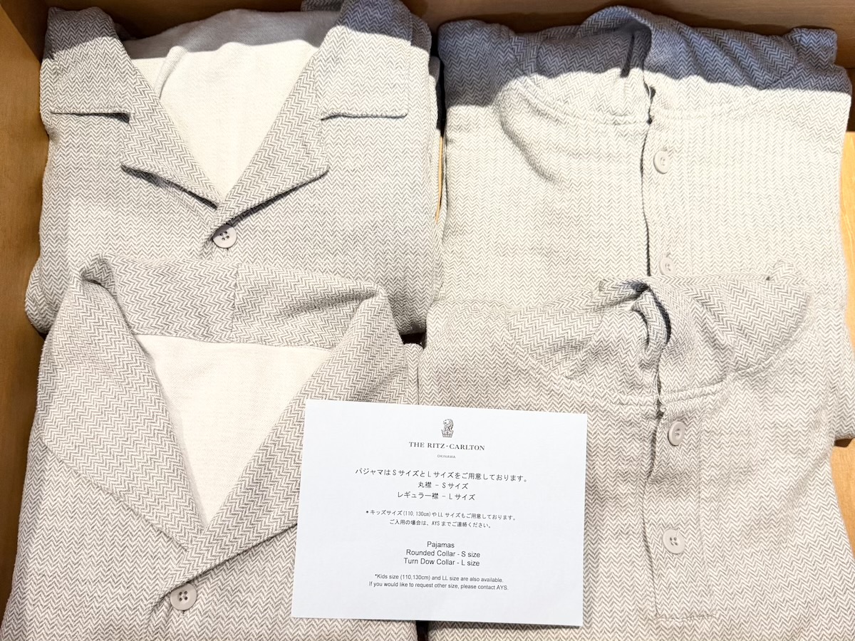 お部屋には、肌触りの良いパジャマと薄手のプールパーカーも用意されていました。パジャマはふんわりとしていて、寝心地抜群。プールパーカーはスパへ行く時にもさっと羽織れて、とっても便利でした。