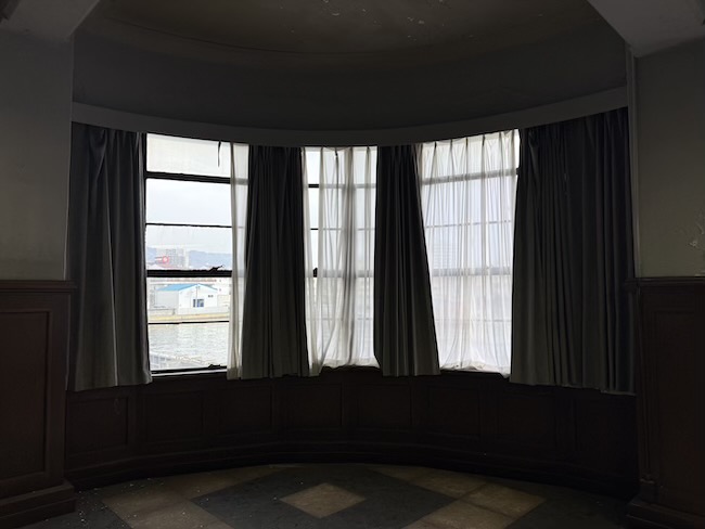 潮風にさらされながら、港のすぐそばに建つこの建物は、神戸港の動きを見守る“目”のような存在だったのでしょう。海を見渡す窓、船のブリッジを思わせるフォルム、そして当時最先端だったアールデコのデザイン。長い年月、海風にさらされてきた外壁には錆びや汚れが残り、決して“きれいに保存された建物”とは言えないけれど、その風化した姿は、港町・神戸の歴史そのものを語りかけているように感じました。