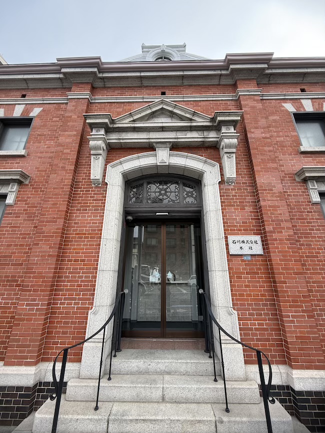 向かった先は、旧加藤海運本社ビルからほど近い場所に建つ「石川株式会社本社ビル」(※神戸建築祭に参加のビルではありません)。赤レンガの外観が印象的なこの建物は、1905(明治38)年竣工。もともとは三菱倉庫の前身である東京倉庫兵庫出張所として建てられたそう。