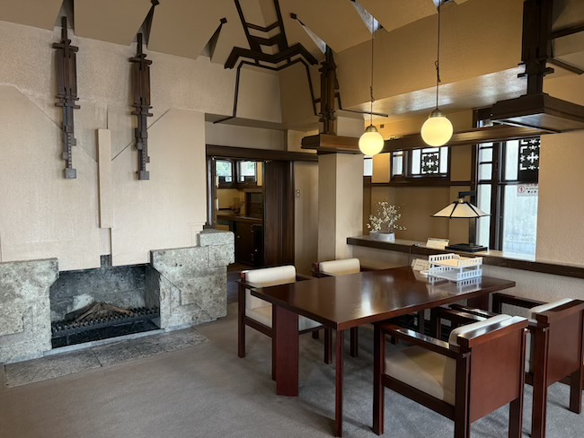 建築の完成までには、少しドラマもあったそうで……。ライトは帝国ホテル建設をめぐるトラブルなどを背景に日本を離れることになり、最終的な完成は弟子である遠藤 新と南 信が引き継ぎ、1924年に竣工しました。