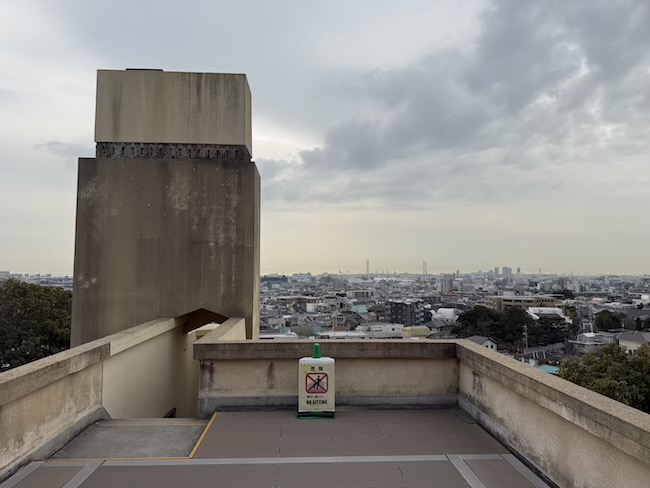 屋上のバルコニーに立つと、六甲の山並み、芦屋の街並み、そして大阪湾までが一望でき、なんとも覇者の気分に。自然と建築が溶け合うこの景色こそ、ライトが目指した“有機的建築”の姿なのかもしれません。