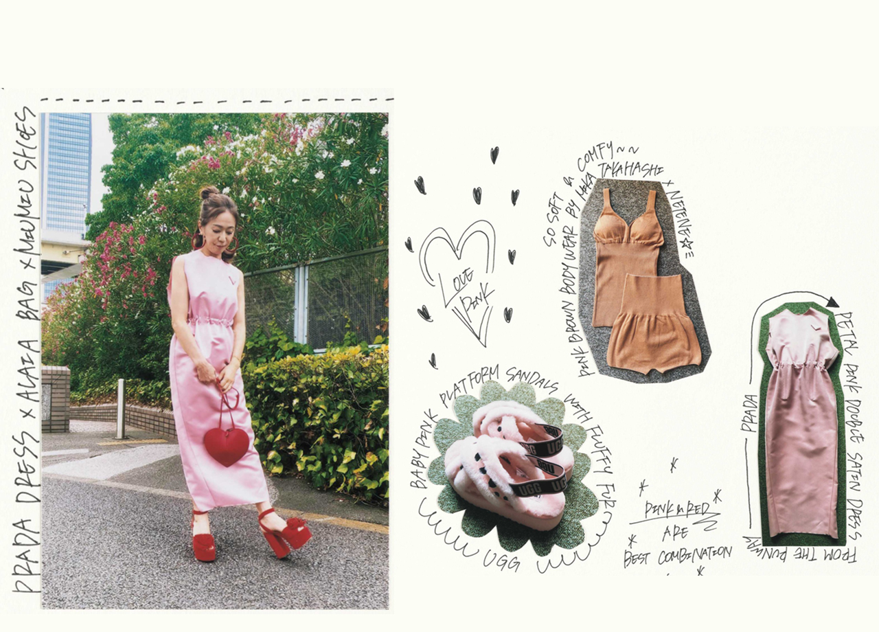 いよいよ夏に突入し、鮮やかなカラーに惹かれています。今号のテーマであるピンクやレッド、グリーンなど、田中杏子流のカラーブロッキングで、コーディネートにメリハリをつけるのが気分です♪