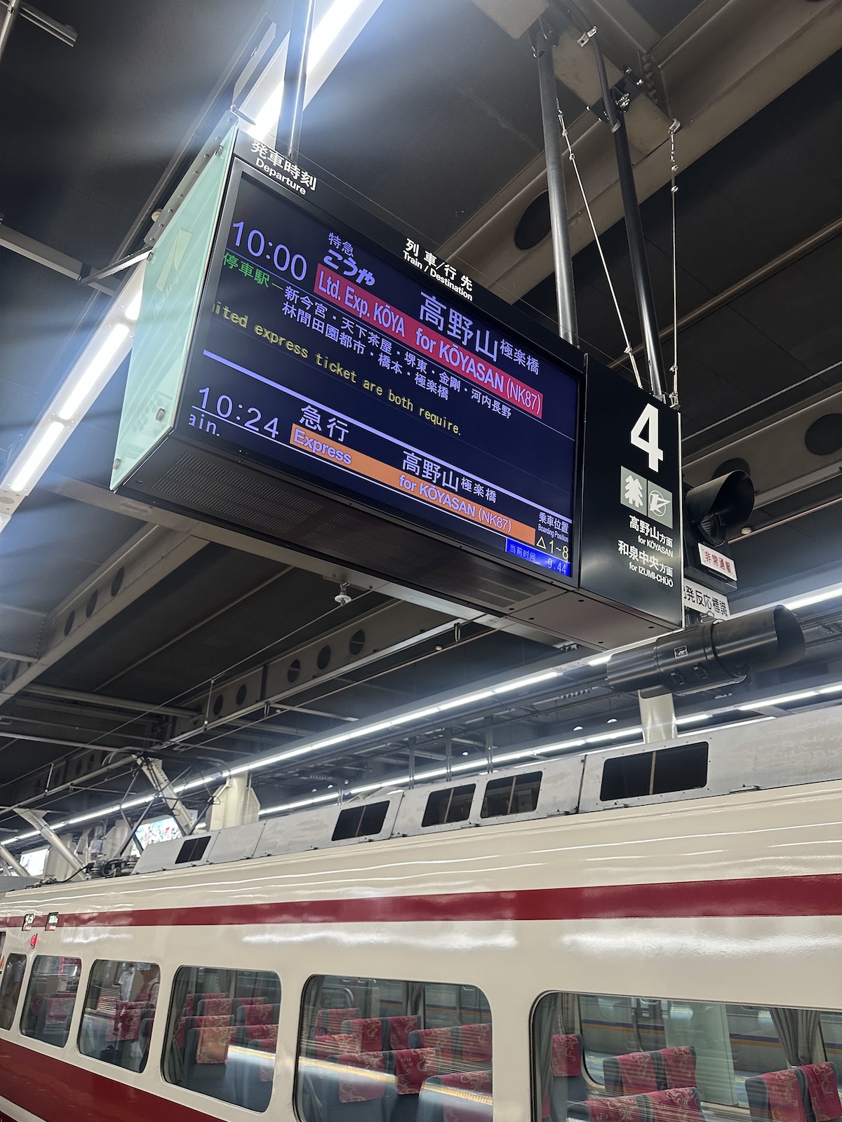 伊丹からリムジンバスで難波に行き、そこから南海高野線「ごくらくばし」駅へ、さらにケーブルカーで「高野山」へ。学生時代の通学電車が南海高野線だったので、懐かしみながらの移動。