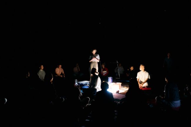 また、円陣座りになって一人一人今回の意気込みを語っていきます。「ずっと自分探しを続けてきて、ここにきて新たな”自分探し”のために参加しました。」私の思いでした。