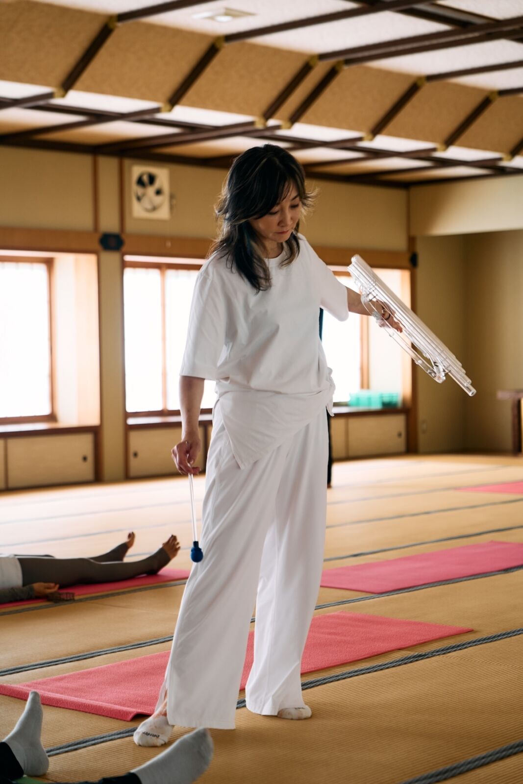 ヨガとクリスタルオームのサウンドを聴きながらの瞑想です。サウンドを奏でてくださるのはクリスタルオームのお二人。東京でもキャンセル待ちで予約の取れない人気のお二人です。