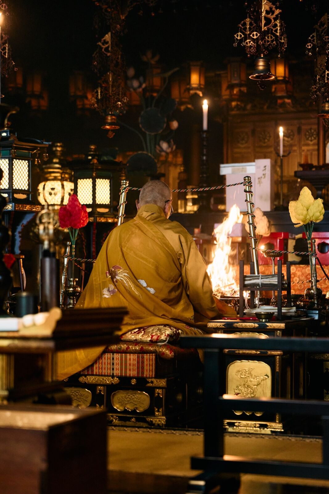 メラメラと炎が立ち、一瞬不安になるほどでしたが、僧侶の積年の職人技のような手捌きで炎は鎮火していきました。