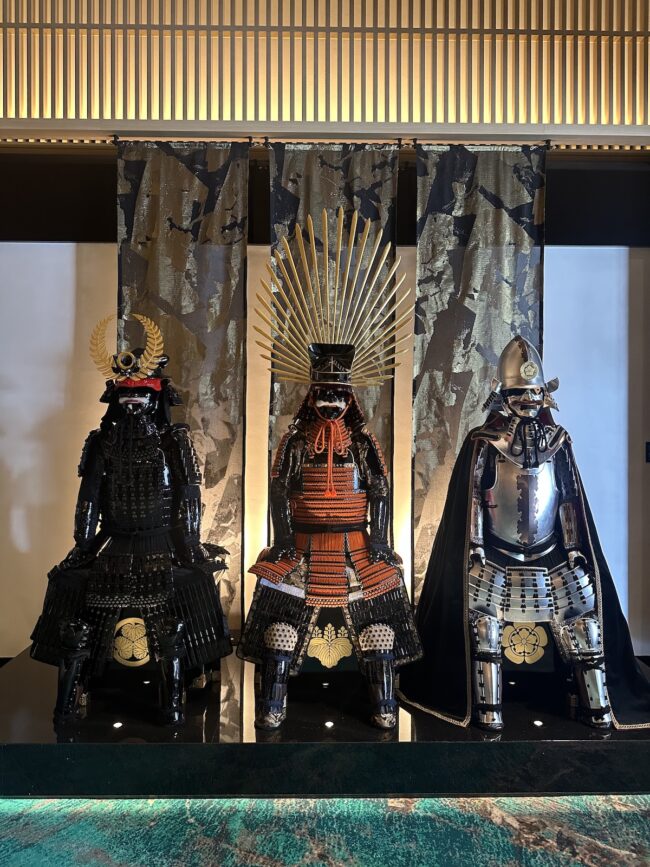 ホテルのエントランスに入るとまず出迎えてくれたのは、かつてこの地域から出て天下人となった織田信長・豊臣秀吉・徳川家康3武将の鎧です。