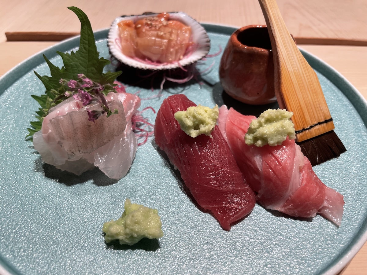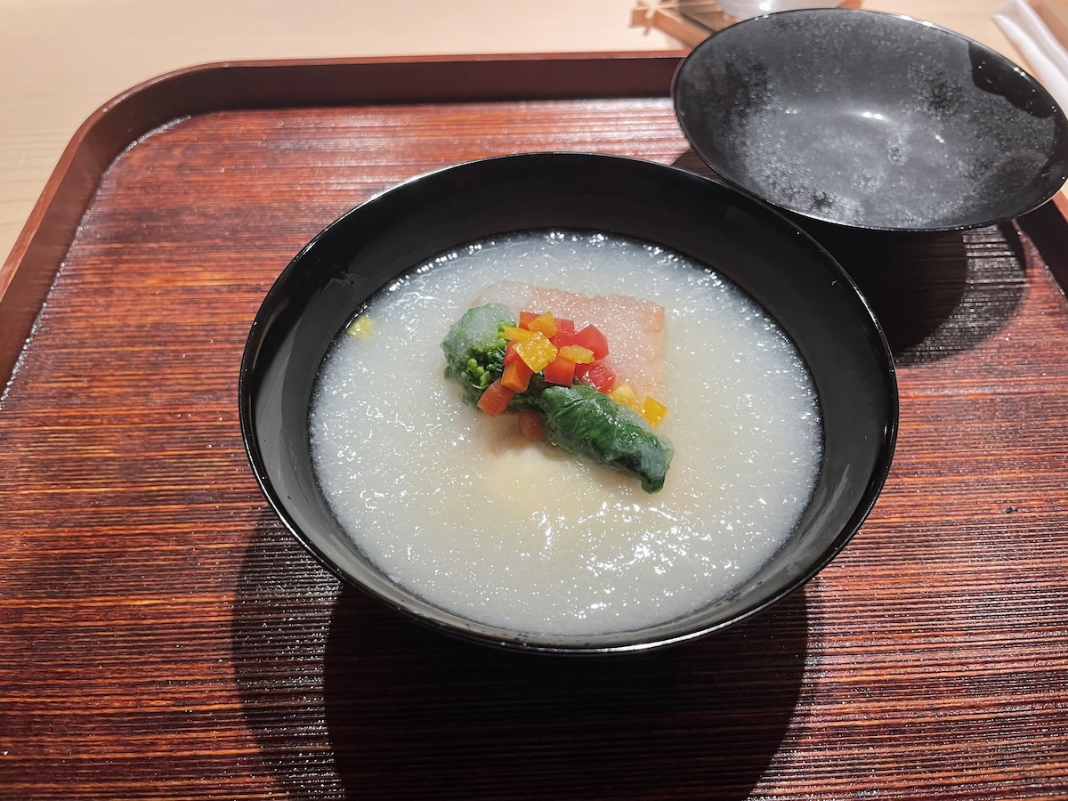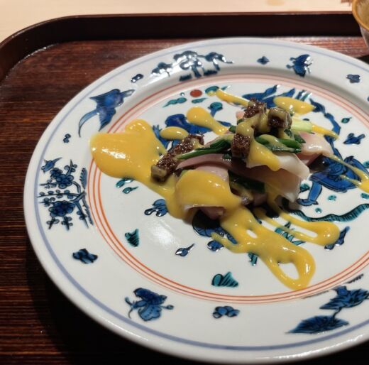 「エスパシオ ナゴヤキャッスル」の魅力はアート作品だけではありません、フレンチ、天ぷら、鮨、鉄板料理、中華……とレストランも充実しています。私はそのなかで京都「祇園 さゝ木」の佐々木浩氏監修の日本料理「丈」のカウンターでディナーをしました。