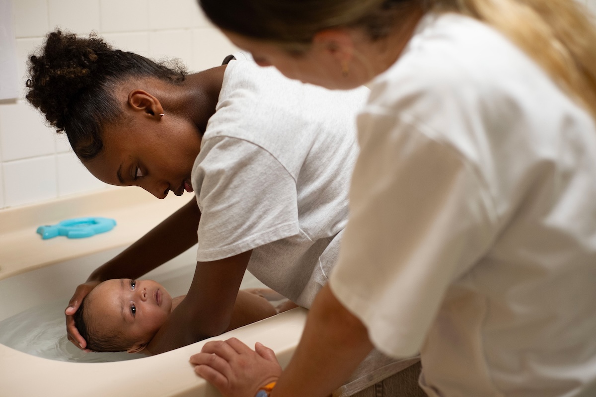 例えばジェシカ(バベット・ヴェルベーク)は、生まれてくる赤ん坊に「決して見捨てない」と誓いながら、かつて自らを手放して養子に出した顔も知らない母親を探し続ける。ペルラ(リュシー・ラリュエル)は少年院帰りの彼氏に拒絶され、姉だけを頼りにしながらも、恋人への想いを捨て切れない。ジュリー(エルザ・ウーベン)は薬物依存から抜け出し、恋人ディランと未来を築こうとする。アリアンヌ(ジャナイナ・アロワ・フォカン)は赤ん坊を手放す決断をめぐり、虐待的な母との関係に立ち向かう。そしてナイマ(サミア・イルミ)の送別会は、他の少女たちにとって希望の形としてそっと置かれる。ほとんどが10代とおぼしき彼女たちはまだ“子ども”でありながら、すでに“母親”でもある。その矛盾を抱えた存在の揺らぎが、映画全体を当初鋭利に、やがて柔らかく照らしていく。