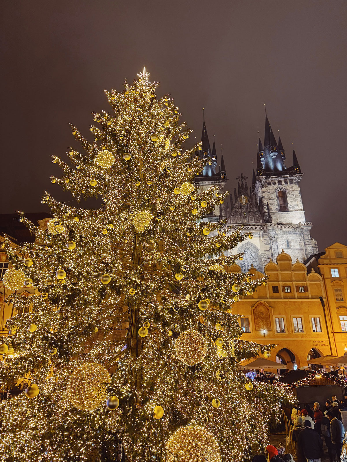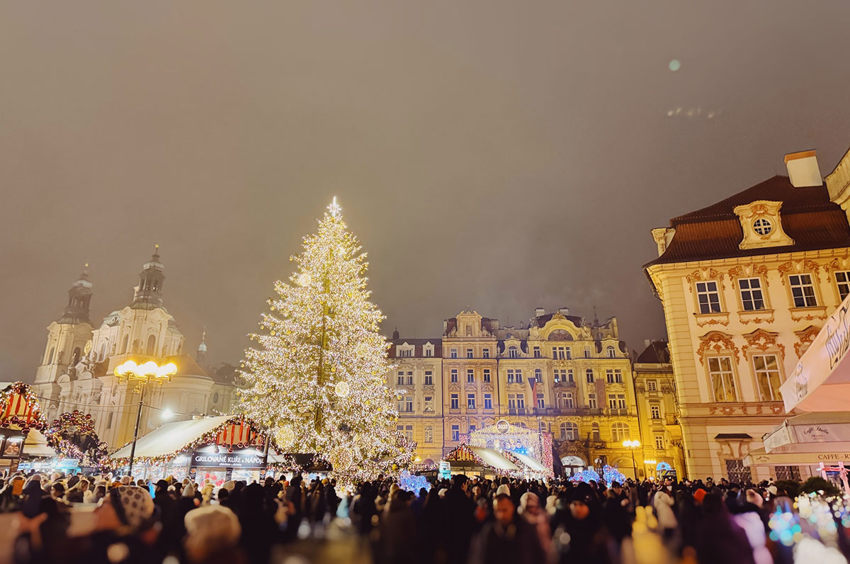 旧市街広場には巨大なクリスマスツリーがライトアップされ、そこではクリスマスマーケットが開催されており、大勢の人で賑わっていました。