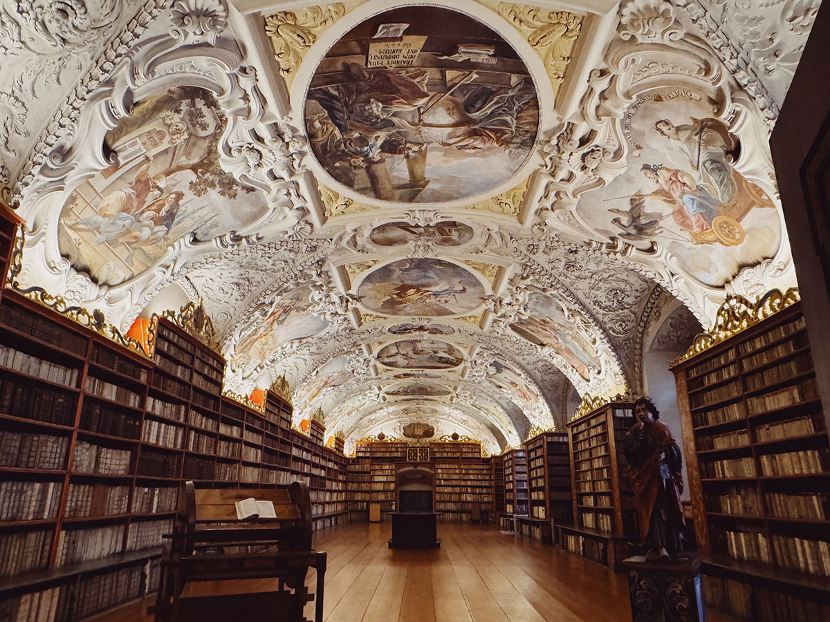 他にも、建物内で言うと、「世界一美しい図書館」とも言われているストラホフ修道院の図書館。約20万冊以上も蔵書されたこの図書館には、「哲学の間」「神学の間」の2つの広間があり、非常に特徴的な空間が広がっています。