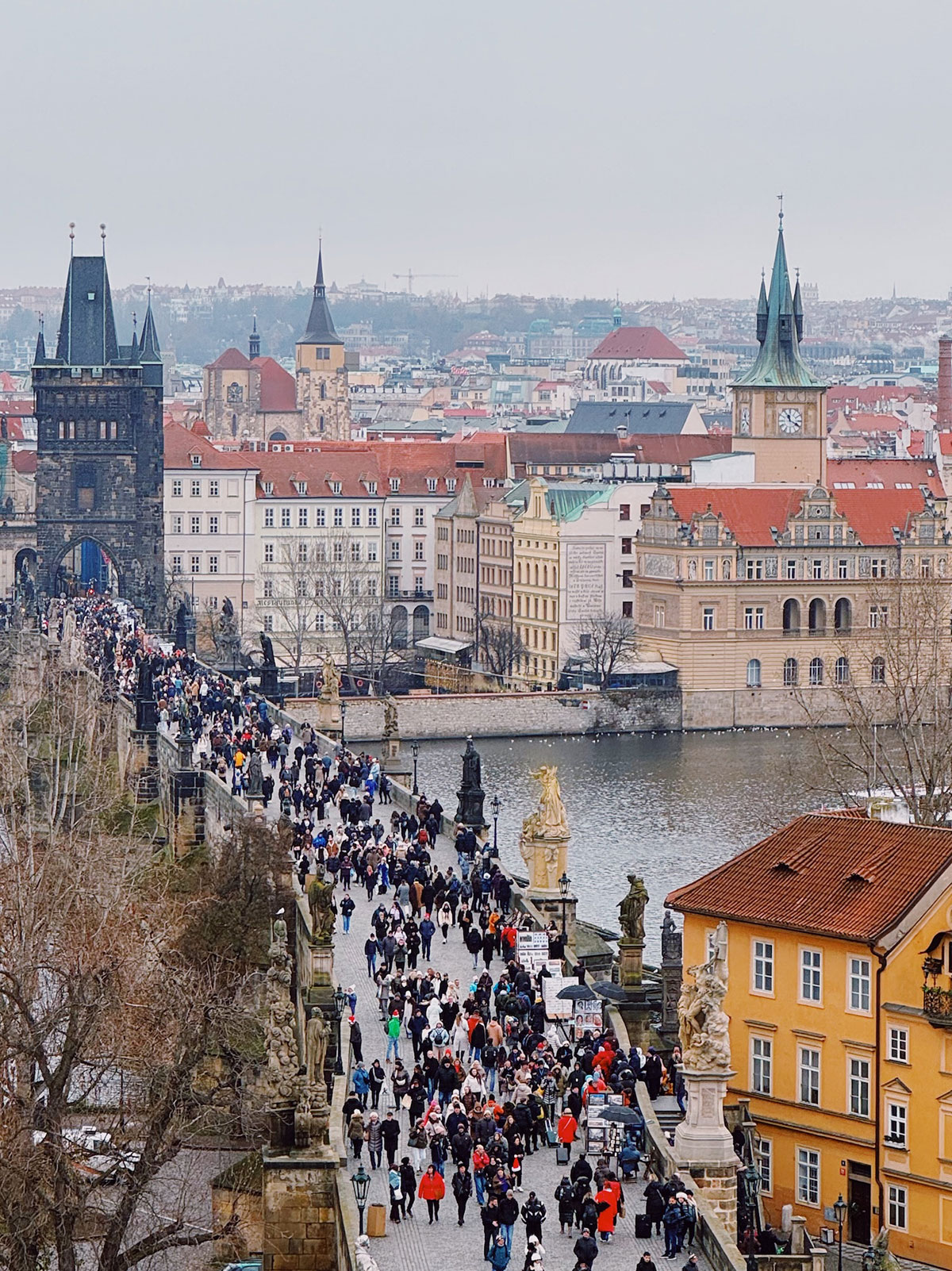 個人的に一番気に入ったのが、「マラー・ストラナ橋塔」からの眺めです。プラハのシンボル的存在である「カレル橋」のプラハ城側にある橋塔で、ここからは旧市街地側、反対のプラハ城側と、ぐるり360度の絶景ビューを楽しむことができます。しかも私が行った時は、他に5〜6人しかおらず、タイミングによってはこの絶景をひとりで見られるという贅沢っぷり。