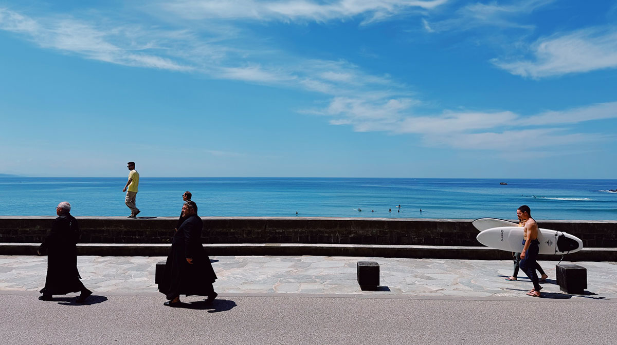 今となっては、ヨーロッパ屈指のサーフスポットとして君臨しており、そのため、ビアリッツの街を歩いていると、どこか洗練されたパリのボンシックな装いのマダムやムッシューもいれば、こんがりと日に焼けた肌にストリート系のTシャツとハーフパンツ姿のサーファーとが共存(!?)しているのです。