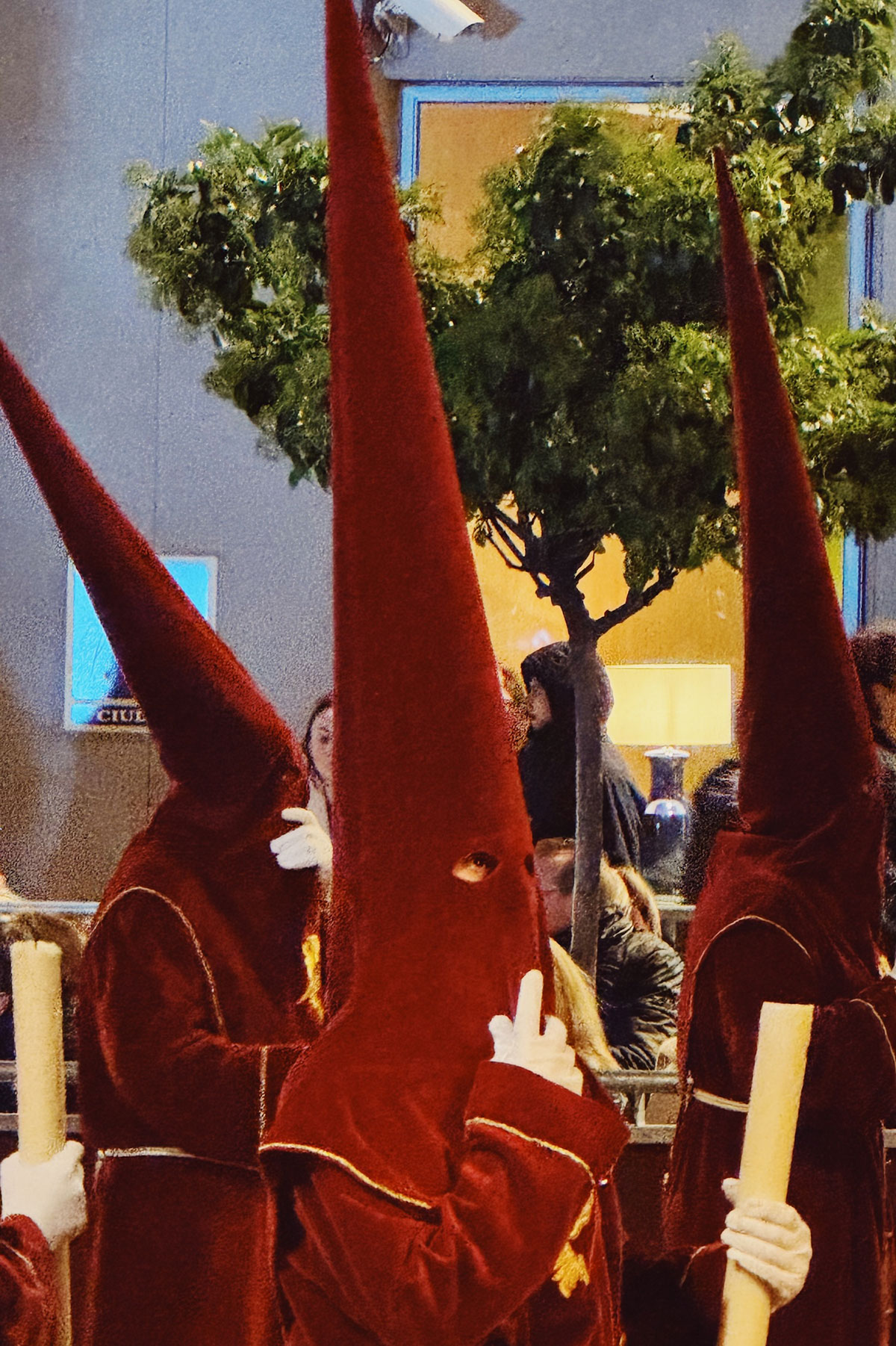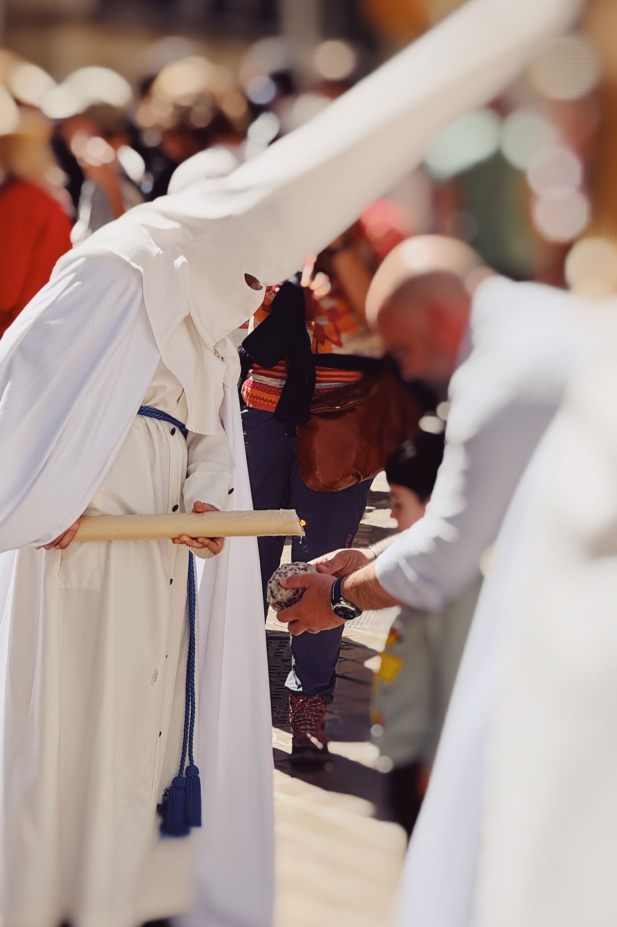 最初見た時は、アメリカあの団体のようにみえ、びっくりしたのですが、ナサレノは、ロウソクを持って歩き、祈りと懺悔を体現しながら行列を導く存在とのこと。