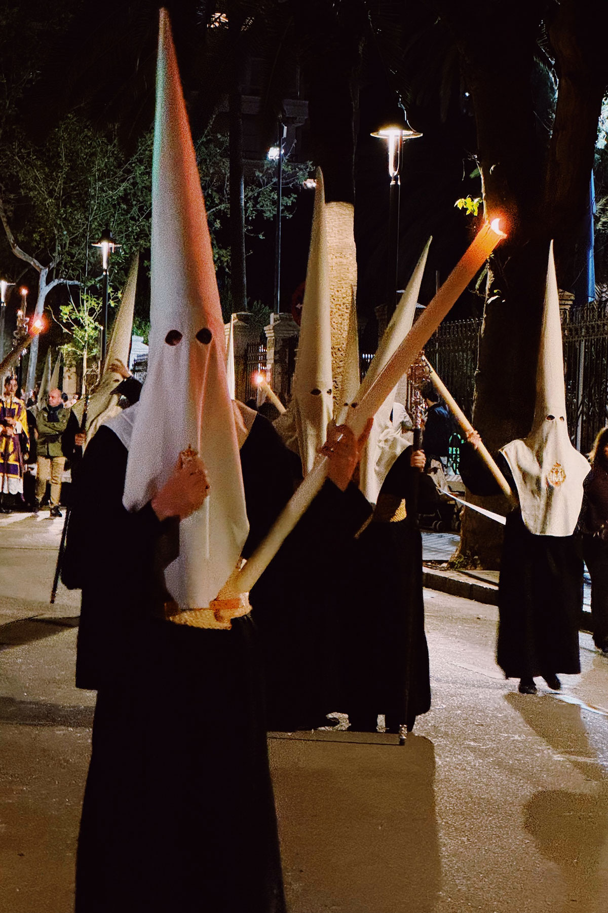 そして、このトロノと一緒にナサレノと呼ばれるローブに三角帽で顔を隠して歩く人たちがいます。