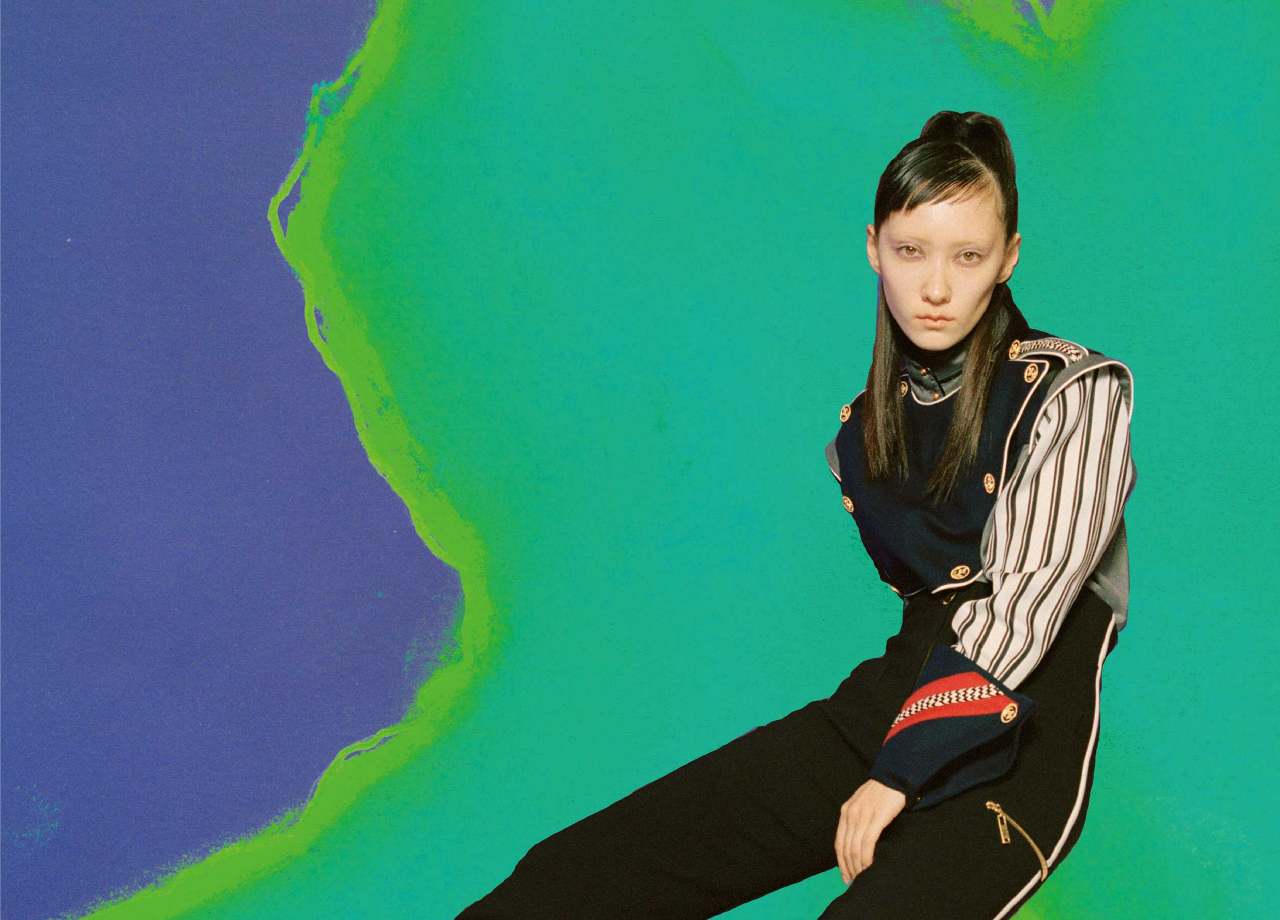カラーブロック、シャイニー素材、キラキラと煌くスパンコールが楽しい2022年クルーズコレクション。田中杏子がピックアップしたルックと、アーティスティックなムード漂うカラフルな背景が融合した不思議な色彩の渦へと引き込まれて。(『Numero TOKYO(ヌメロ・トウキョウ)』2022年1・2月合併号掲載)