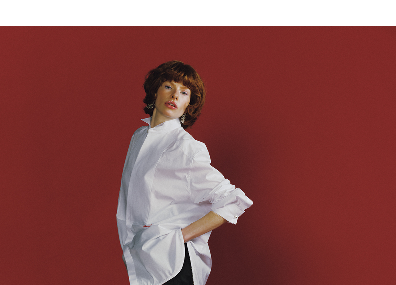 かつてガブリエル・シャネルの恋人が愛用していたシャツからヒントを得た、オーバーサイズの白シャツ。そこに流れるようなロングスカートを合わせ、女性らしくエレガントな味付けを。ベーシックなアイテムこそ、時代を超えて輝く、揺るぎない魅力を秘めている。