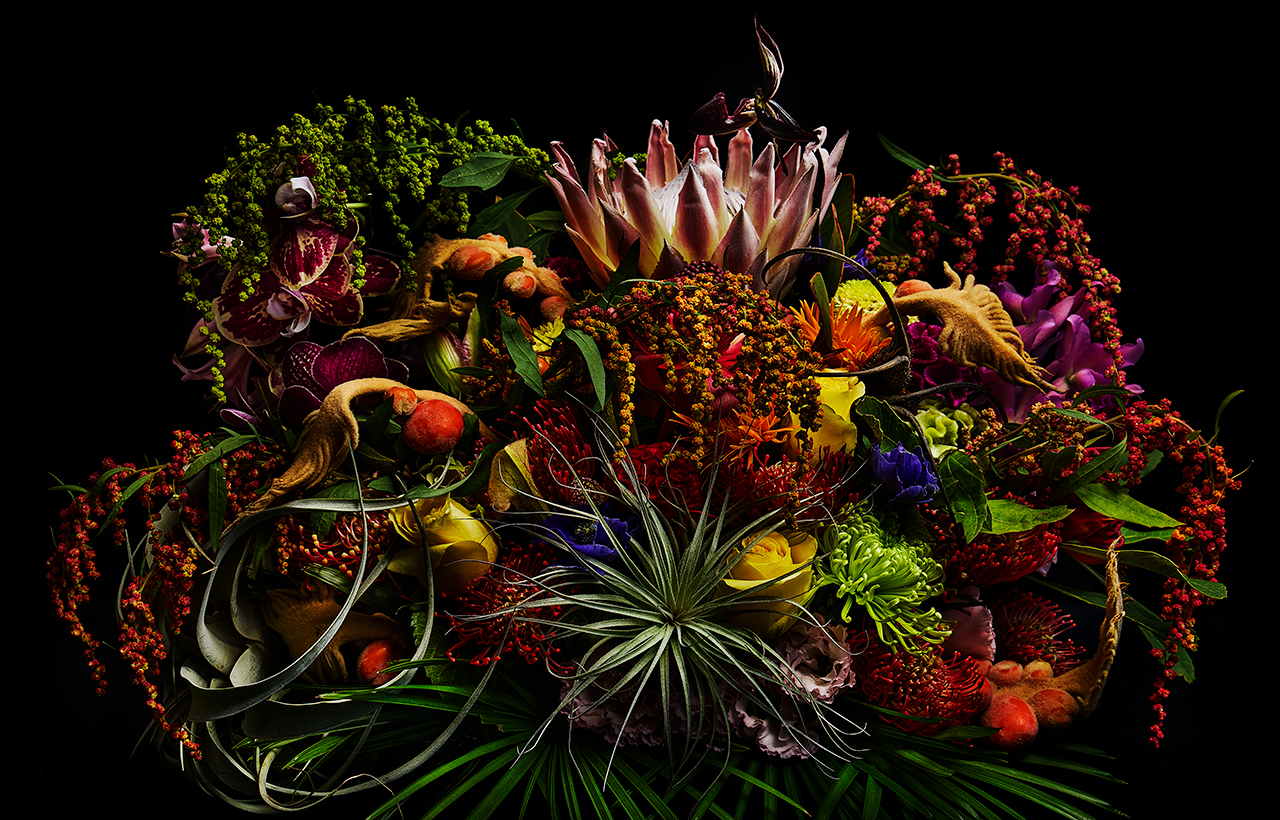 東信が手がける「Numero TOKYO(ヌメロ・トウキョウ)」本誌の連載企画「今月のフラワーアート」。強さやエネルギーを秘めた、花本来の本質的な美しさをアートで表現する。 Vol.193は、「百花繚乱の冬の幻夢」。