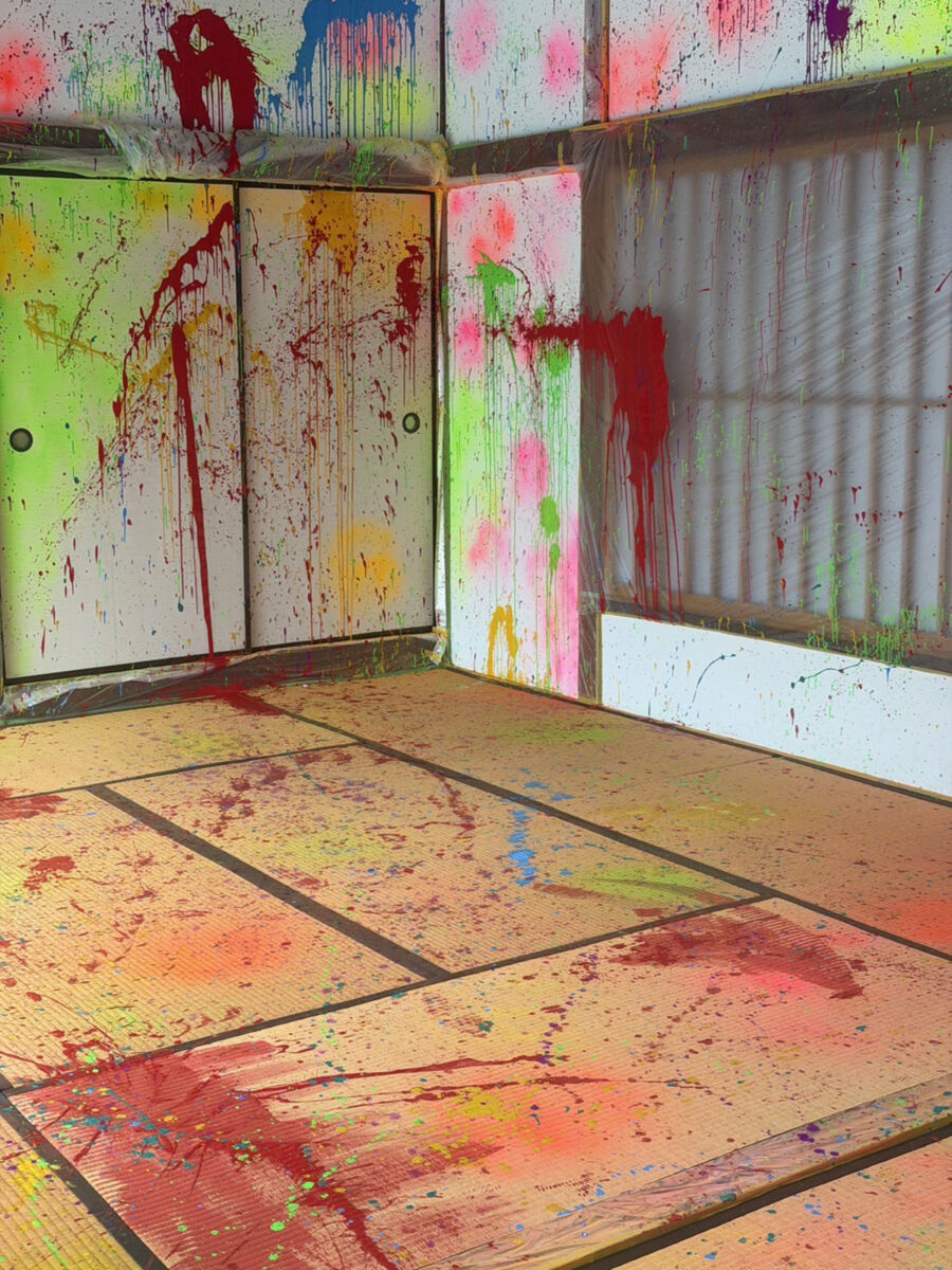 だから直前までどういう展示内容にするか決めずに、まずは畳の部屋にペンキをぶちまけて、その場で『こうしたらどうかな?』って作っていく感じにしたの。現場のライブ感覚で作り込んでいくことで、自分の感性とダイレクトにつながるものにしようと思って」