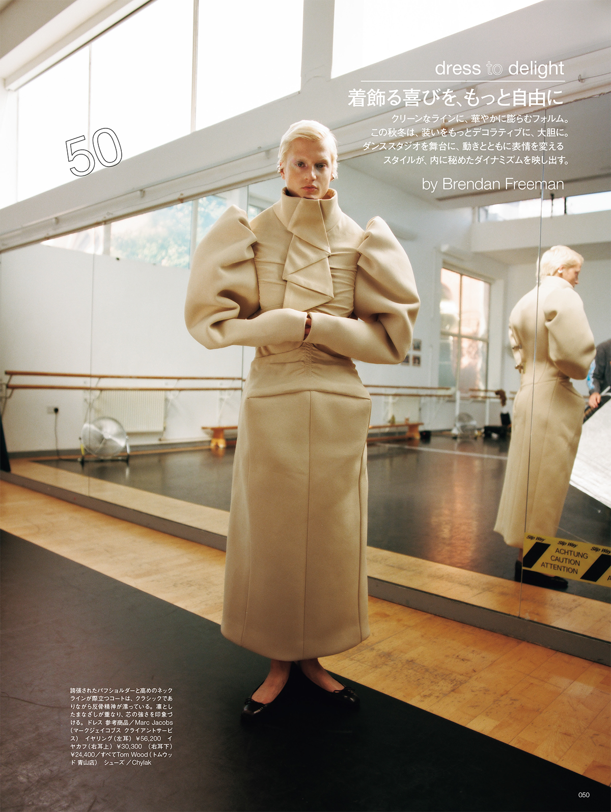 クリーンなラインに、華やかに膨らむフォルム。この秋冬は、装いをもっとデコラティブに、大胆に。ダンススタジオを舞台に、動きとともに表情を変えるスタイルが、内に秘めたダイナミズムを映し出す。