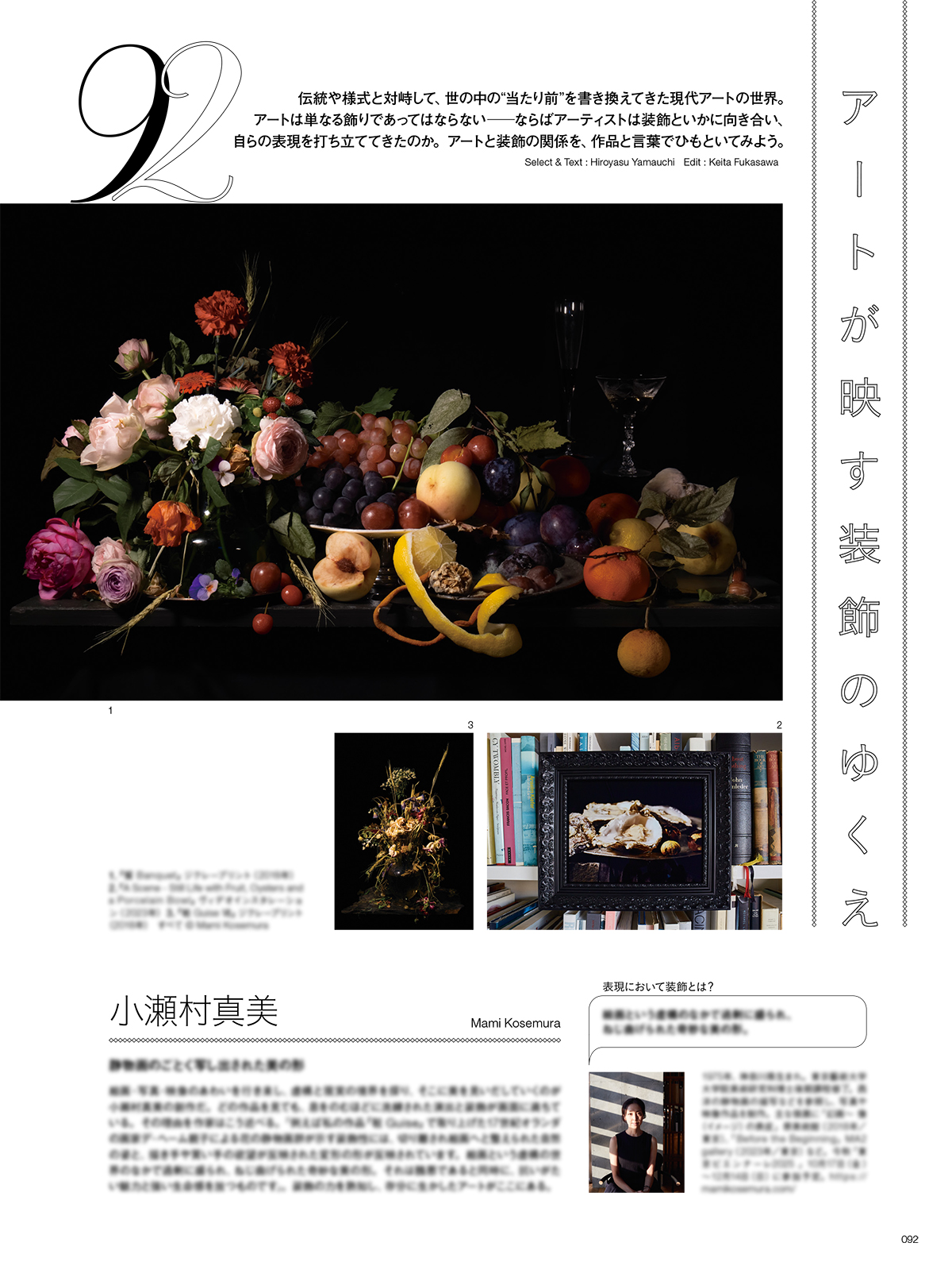 “単なる飾り”であってはならないのが、現代アートの世界。ならばアーティストは装飾といかに向き合い、自らの表現を打ち立ててきたのか。写真、絵画、デジタルアート、立体、インスタレーションから現代の浮世絵まで。アートと装飾の関係を、作品と言葉でひもといてみよう。