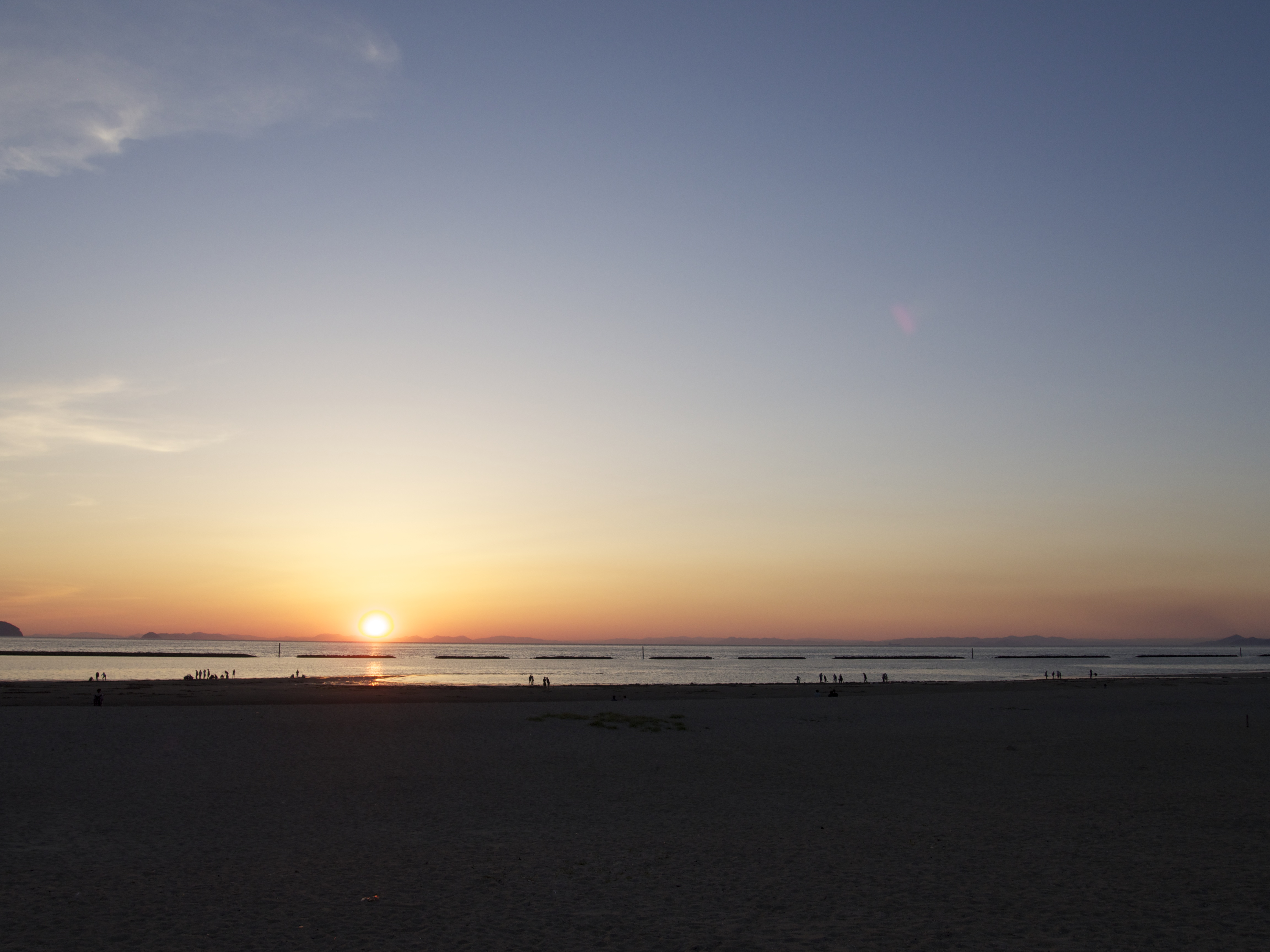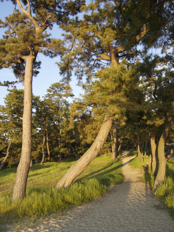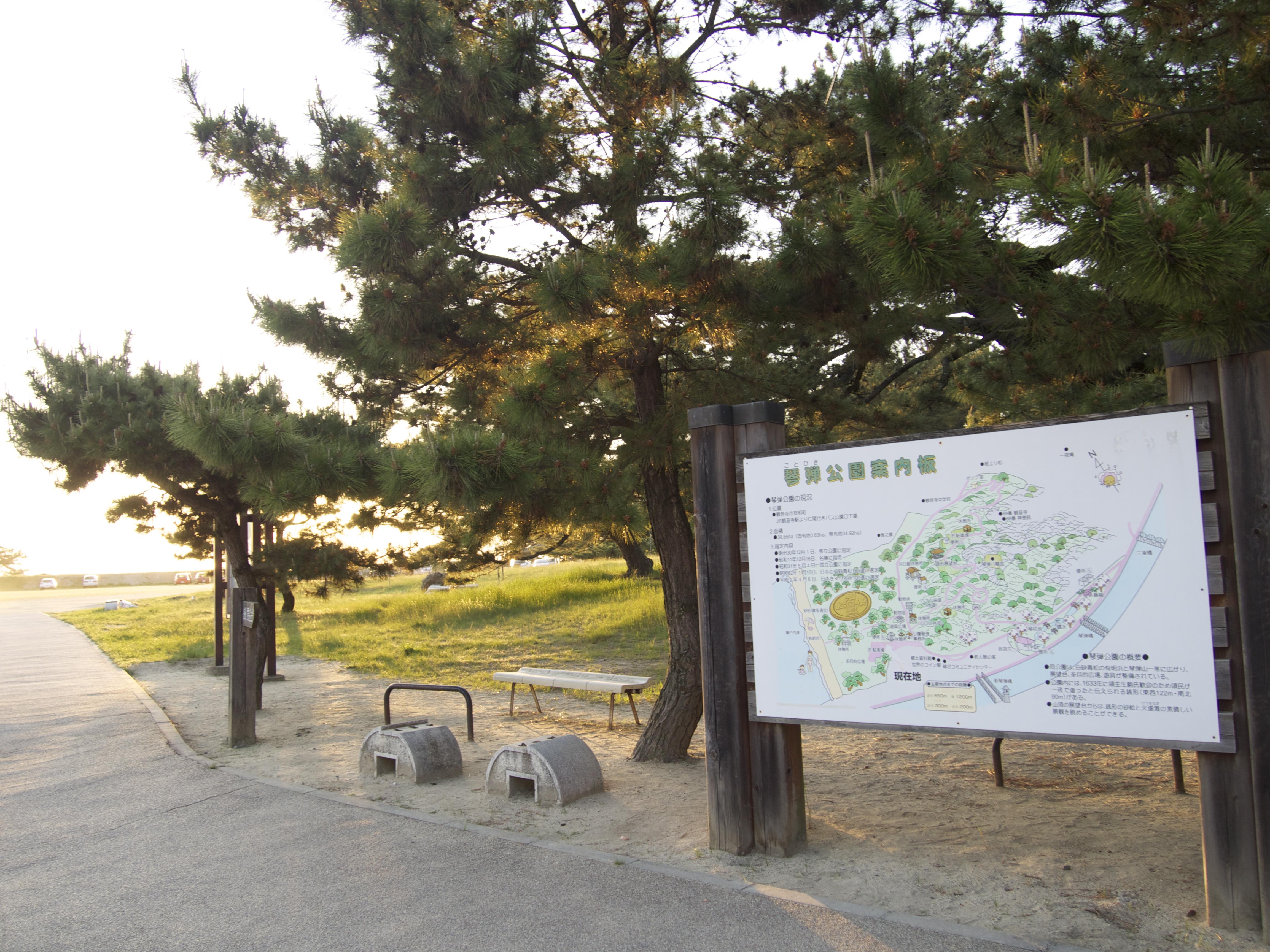 有明浜の隣には、琴弾公園という広大な敷地があり、5万本の黒松が群生しており、この中に寛永通宝や神社など、名所が点在しています。最近はこのあたりが観光名所になっているようで、数年前から温泉施設もできました。