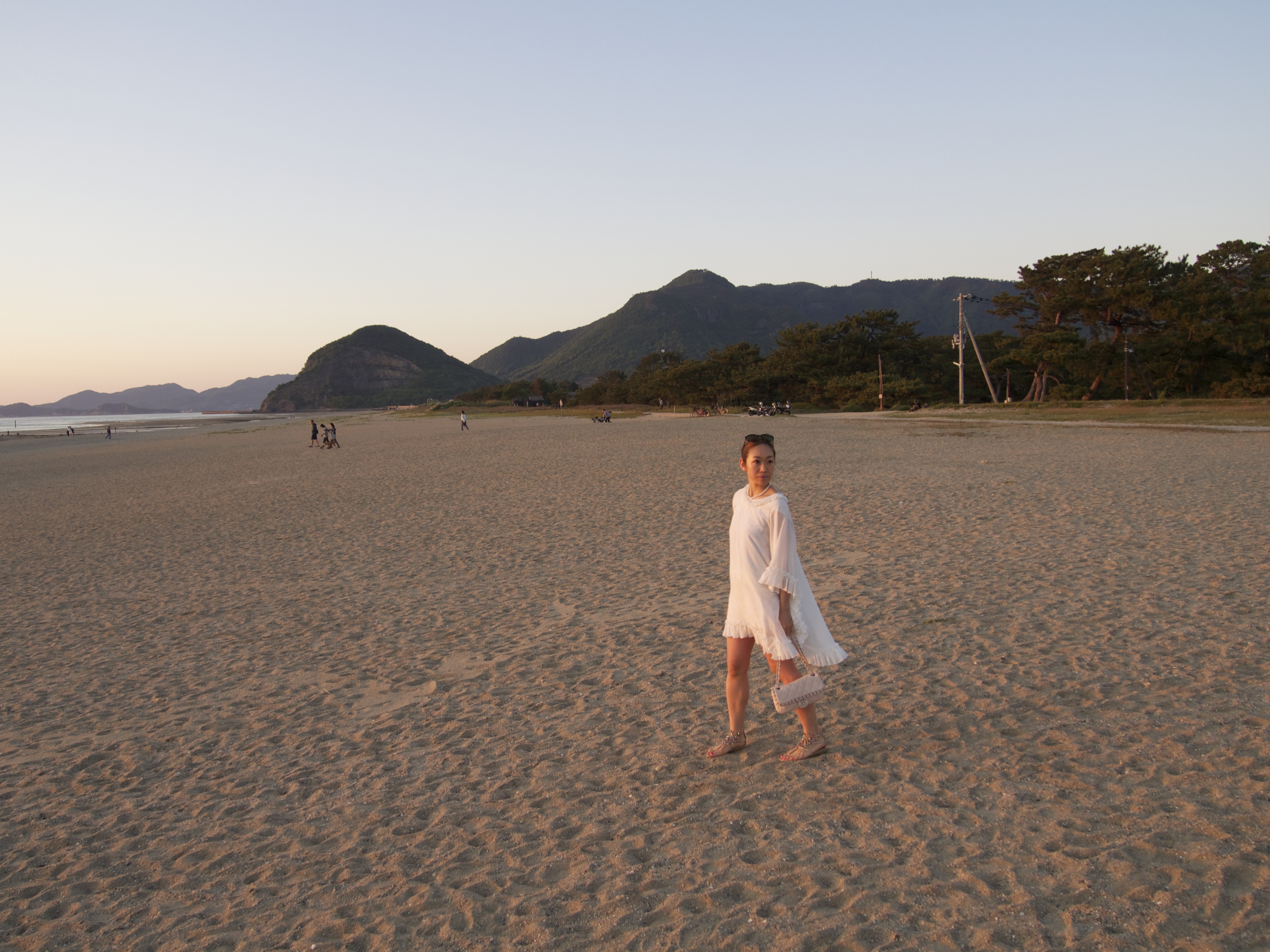 ちなみに、有明浜で私が着ている白いポンチョはThomas Wyldeのもの。贅沢なフリル使いが、ラグジュアリーなリゾートスタイルを叶えてくれる逸品。夏に向けて、色違いのピンクも欲しい。