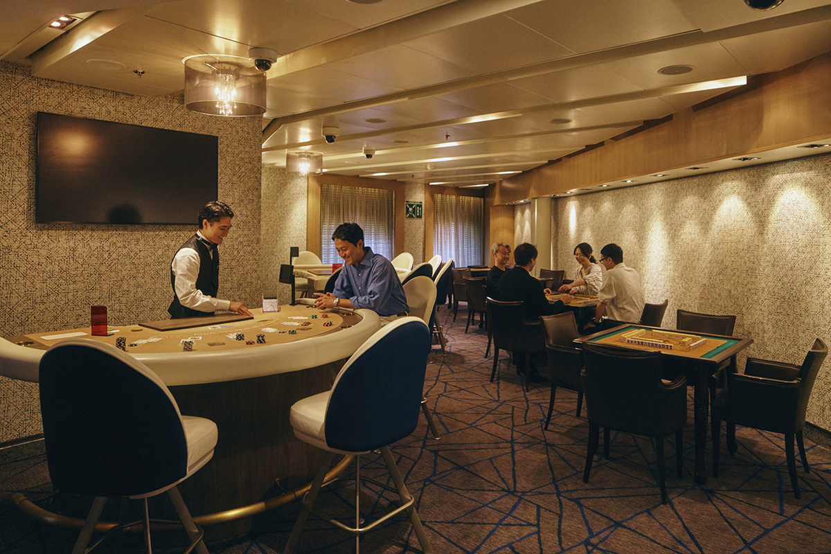 また、クルーズといえば、カジノ。もちろん三井オーシャンフジ内にもあります。ただし、コインやチップを換金することはできません。ゲームと雰囲気を楽しみましょう。