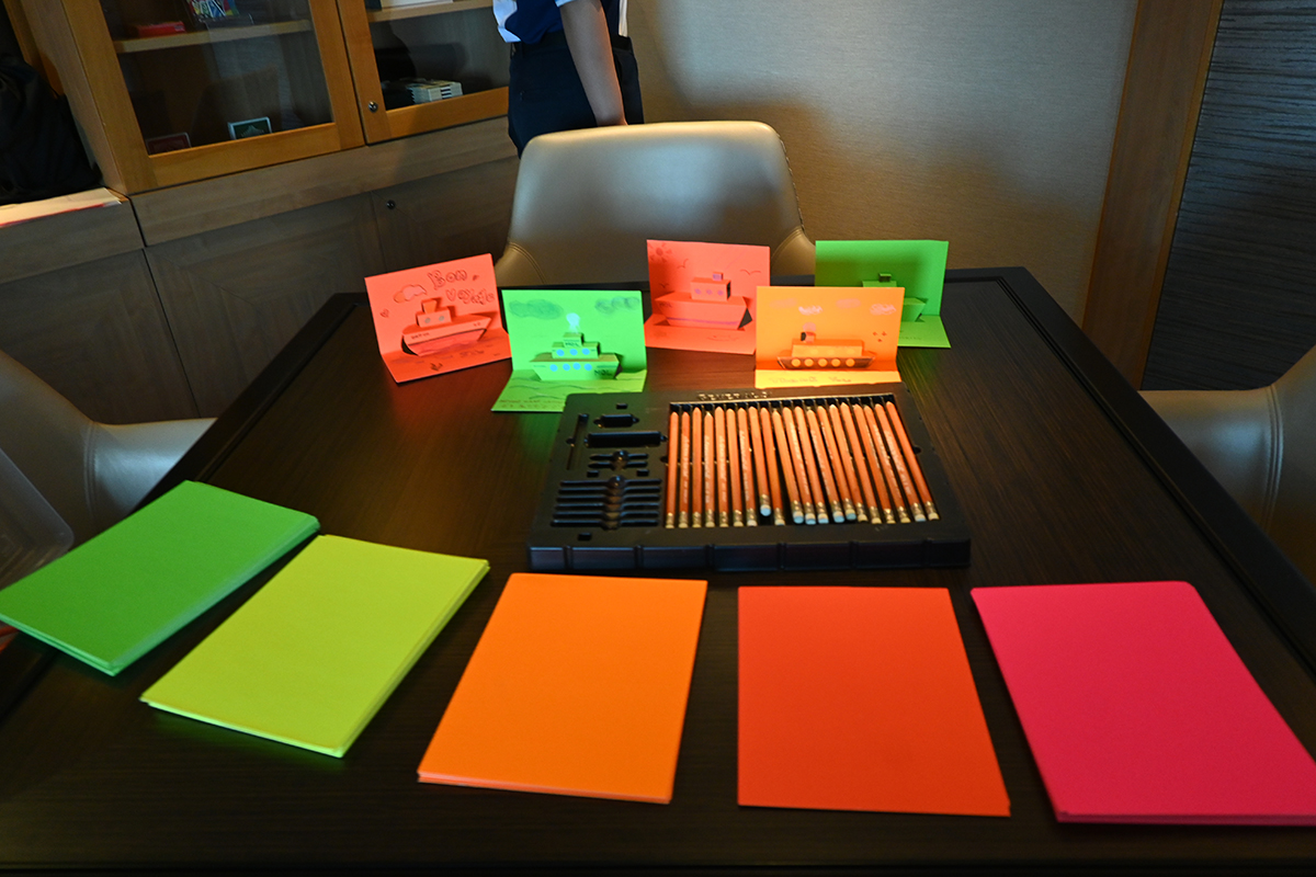 ステージのショー以外にも、朝から晩までエンターテイメントやプログラムがノンストップで続きます。1日のスケジュールを決める上で役に立つのが、船内新聞「PORT & STARBOARD」と客室のテレビで視聴できる船内の情報番組「船旅モーニング」。この2つは必見です。