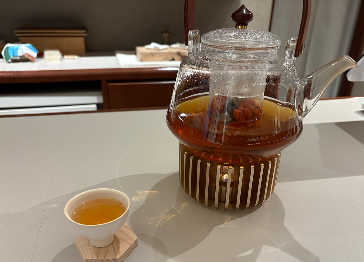 カウンセリング中に「仙麗茶」という8種類の薬草がブレンドされた健康茶をなつめなどと煮出したお茶をいただいたのですが、リフレクソロジーとの相乗効果で、帰るころには全身がじんわりと温まる温活効果を実感しました。健康茶と聞くとクセが強そうな味を想像しますが、ほんのり甘い味わいで美味しかったです。