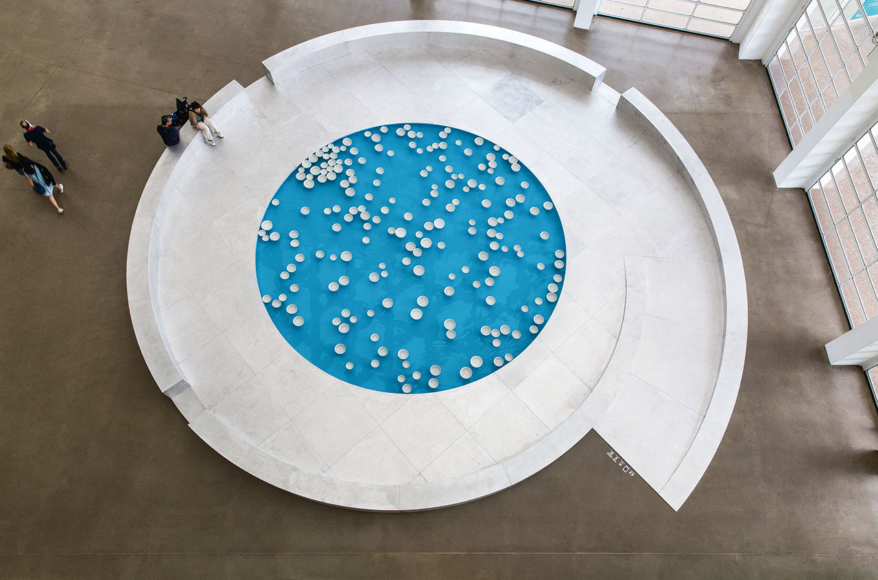 そのポーラ美術館が、2002年の開館以来、初めてとなる現代アートの展覧会企画を打ち出した。タイトルは「シンコペーション」──リズムを意図的にずらすことで、躍動や緊張感をもたらす音楽手法。例えばモネの『睡蓮』には、水面を漂う大小の陶器が触れ合い、凜とした音を奏でるインスタレーションを対置する。