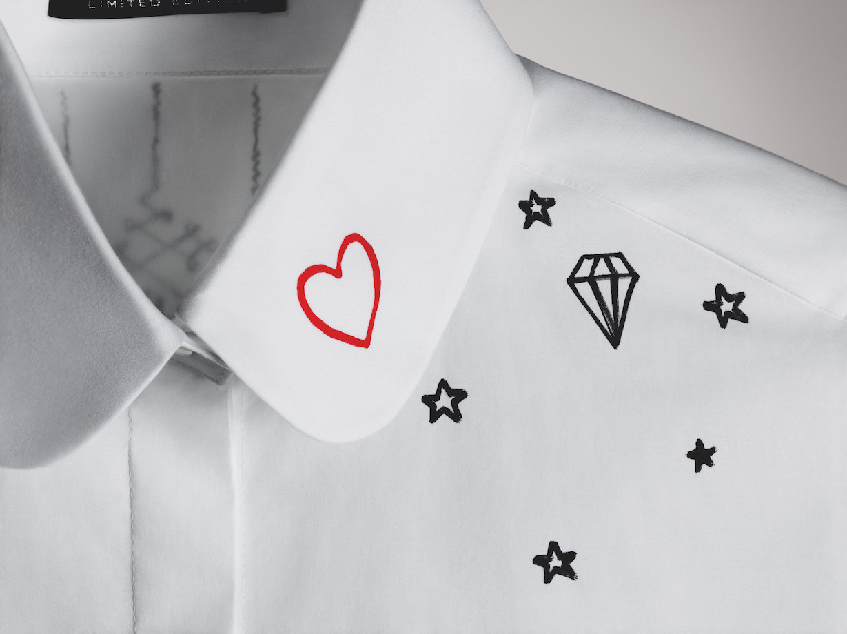イラストやメッセージを書き込んだり、構築的なシルエットにアレンジしたり、その人のアイコニックなモチーフを施したり…それぞれのカールへの想いが溢れた、唯一無二のデザインが完成した。白シャツは、カールのラッキーナンバー「7」にちなんで、各77点、77,777円で9月26日(木)日本時間20時よりKarl.comとFarfetch.comにて販売がスタート。売り上げはすべて、パリ・デカルト大学の医学研究に資金援助を行う慈善団体で、カールが長年支援していた「Sauver la Vie」に寄付される。