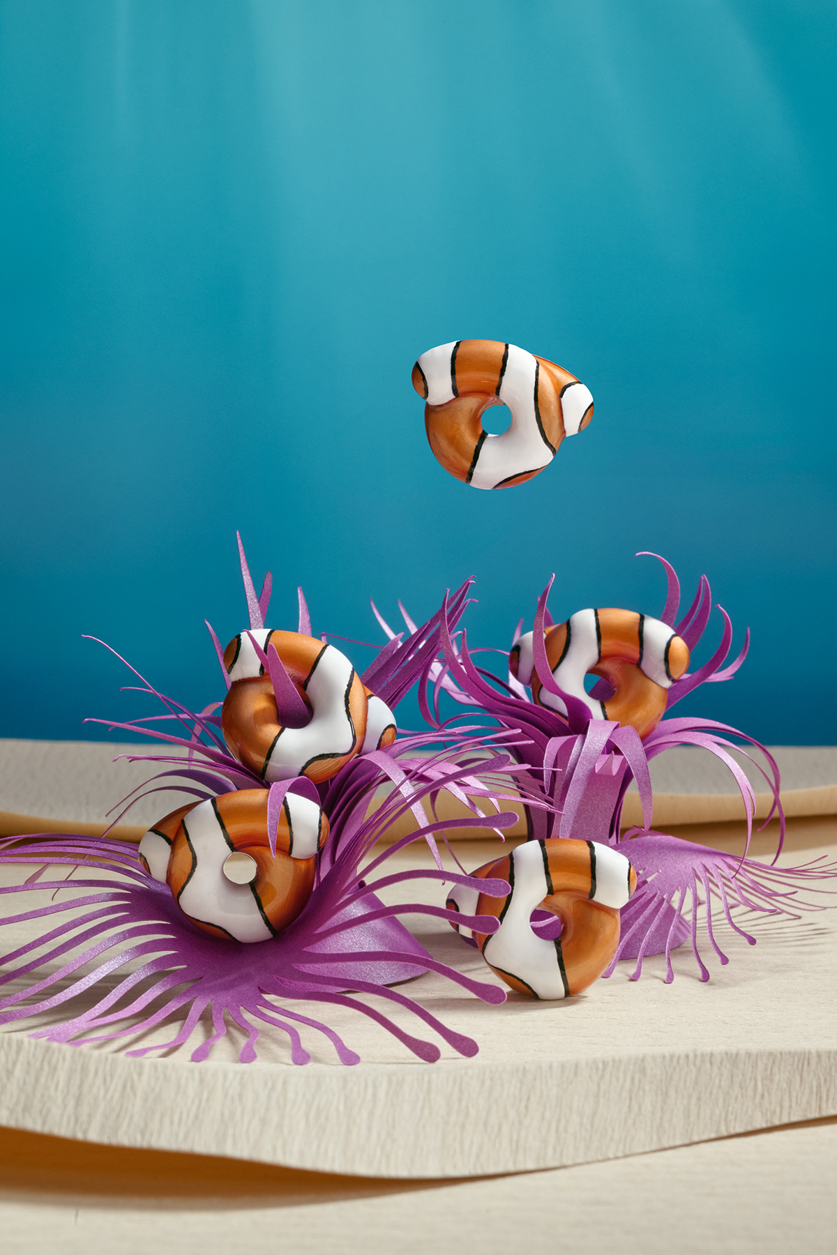 今回のコレクションでは、爬虫類や両生類、タコなど、熱帯や水中に生きる生物たちの姿をモチーフに採用。職人技が光る精緻な造形と、遊び心あふれるカラーパレットが、まるでファンタジックな海中世界を思わせる。イタリアンアートのエッセンスが随所に感じられるデザインが特徴。
