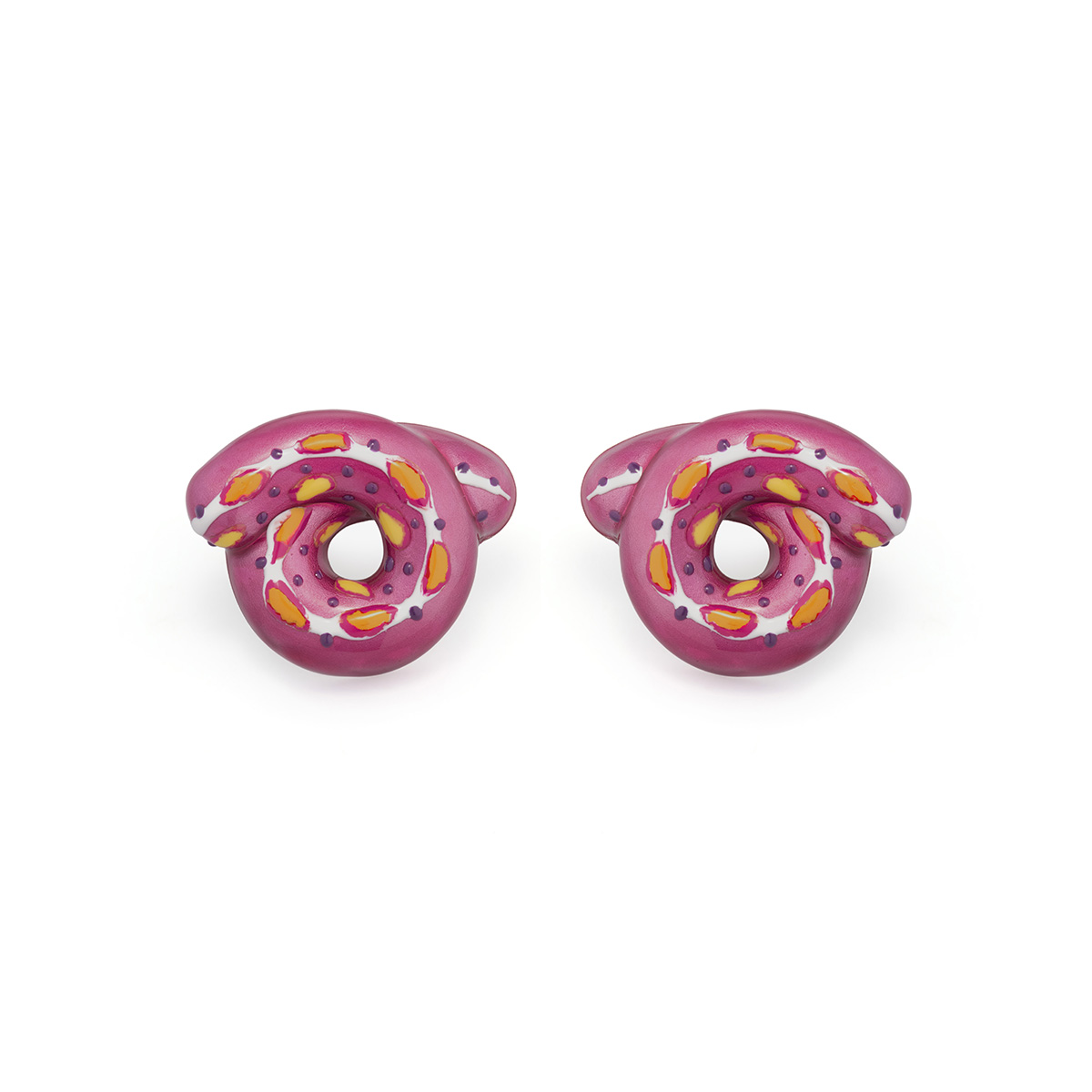2013年、ミラノにてスタートしたベア・ボンジャスカは、ポップカルチャーと現代アートを巧みに取り入れたユニークなスタイルで知られるブランド。クラシックなゴールド素材に鮮烈なカラーリングを重ねることで、伝統と革新の間を行き来するジュエリーを提案してきた。