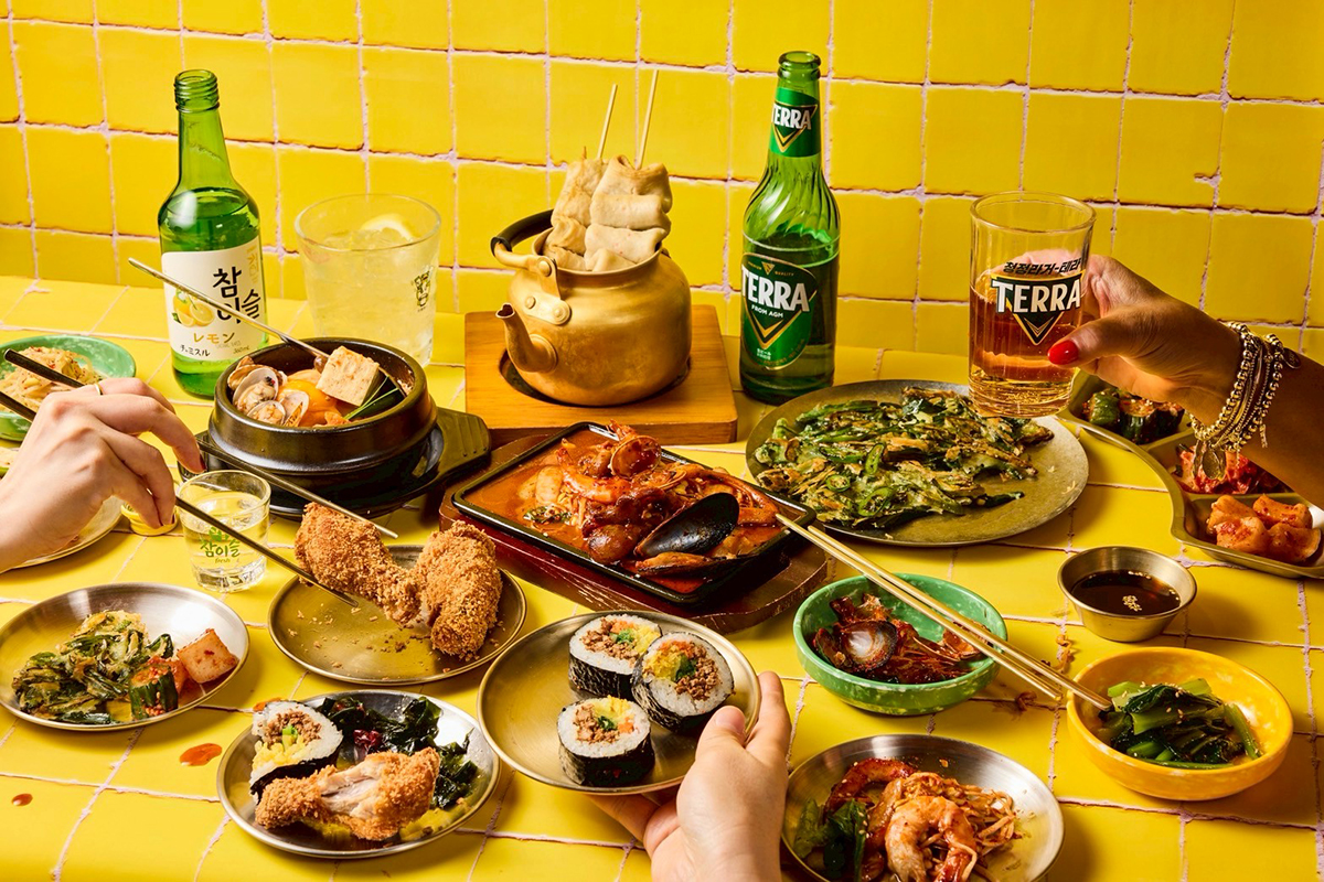 料理は、本格韓国グルメをベースに、チメク(チキン×ビール)やトッポギ、ヤンニョムチキンなど、定番から進化系まで幅広くラインアップ。また、ソウルのピクニック文化を再現したセルフ式の「漢江(ハンガン)ラーメン」も体験でき、その場でインスタントラーメンを調理し、自由にトッピングを加えて楽しむことができる。