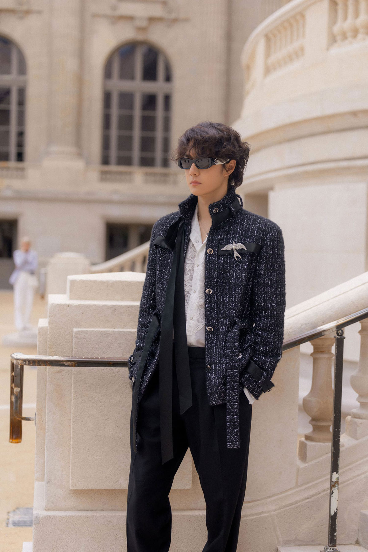 新たなアーティスティック・ディレクターにであるマチュー・ブレイジーのデビュー前ということもあり、今回のコレクションもクリエイション・スタジオが手掛けた。フロントロウのソファや床に敷き詰められたエクリュの絨毯、ロココ調の装飾が施された門扉など、パリ・カンボン通りにあるシャネルのオートクチュール サロンを想起させる舞台美術がノーブルなムードを後押しする。