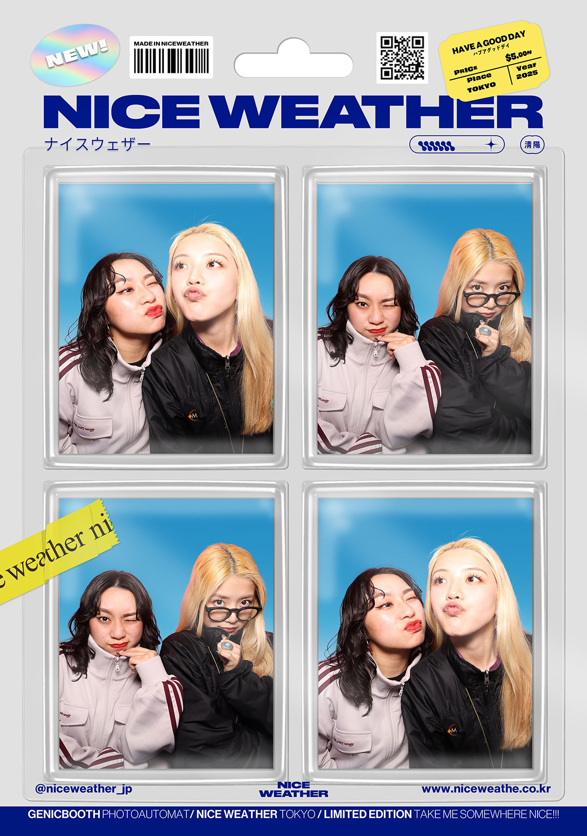 また、会場に韓国で人気の“盛らない”無加工韓国セルフ写真ブース「GENICBOOTH Photoautomat(ジェニックブース・フォトオートマット)」を設置し、ナイスウェザー仕様の特別な台紙フレームで撮影することができる(1回¥500)。商品を¥5,500(税込)以上購入すると、1回分無料になるバウチャーコードの進呈も。