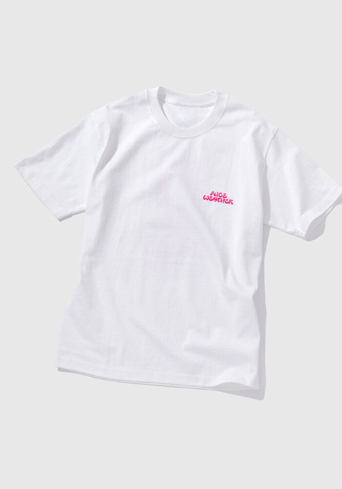 ナイスウェザーの日本上陸を記念し、韓国と日本のカルチャーを組み合わせたスペシャルなTシャツが登場。グラフィックは「A DESIGN LAB」所属のデザイナー、岩瀬 和による江戸文字で再構築した「NICE WEATHER」のロゴと「淸陽」のロゴがあしらわれている。今回は原宿ポップアップ限定で「淸陽」のロゴをピンクに施したカラーが発売。XS~Lまでの展開となり、ユニセックスで着用することができる。