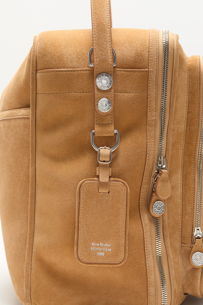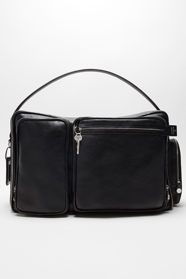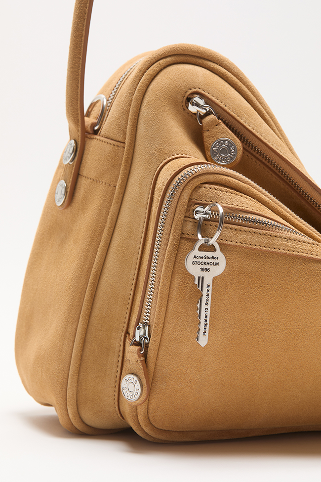 すべてのカメロバッグには、「Acne Studios Stockholm 1996」と刻印されたキー型チャームを装備。複数のジップコンパートメントやリベットといった機能性に加え、「Hotel」にはブランドロゴを刻んだミラータグが新しく取り入れられている。