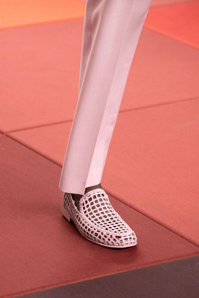 シルヴィア・フェンディは「これは、リラックスしたカラフルな心地よさと、ロマンティックな優雅さについてなのです。ひとつの定義に縛られるものではなく、日常と卓越したクラフツマンシップの間を行き来する流動性のこと。シンプルな所作の背後に、複雑な仕事が隠れています。その二面性に、私は惹かれてきました」と語る。伝統を踏まえながらも新しい解釈を重ね、フェンディらしい自由で遊び心に満ちた世界を見せてくれた。