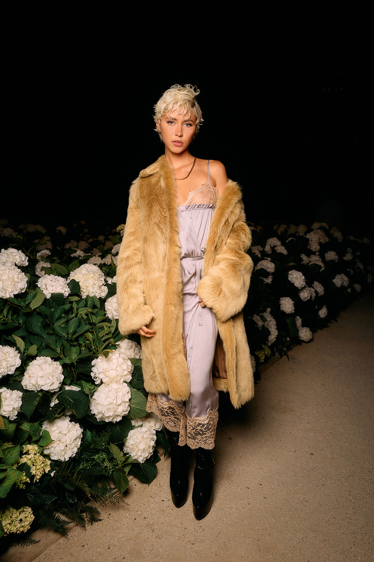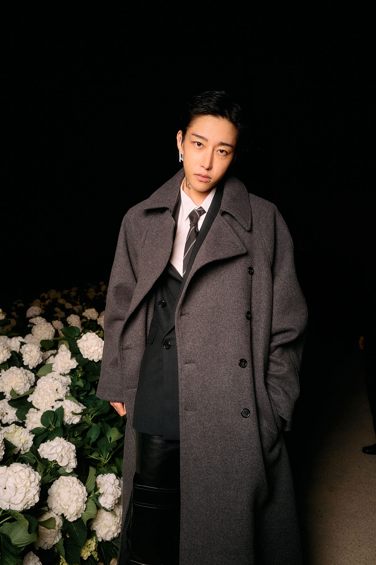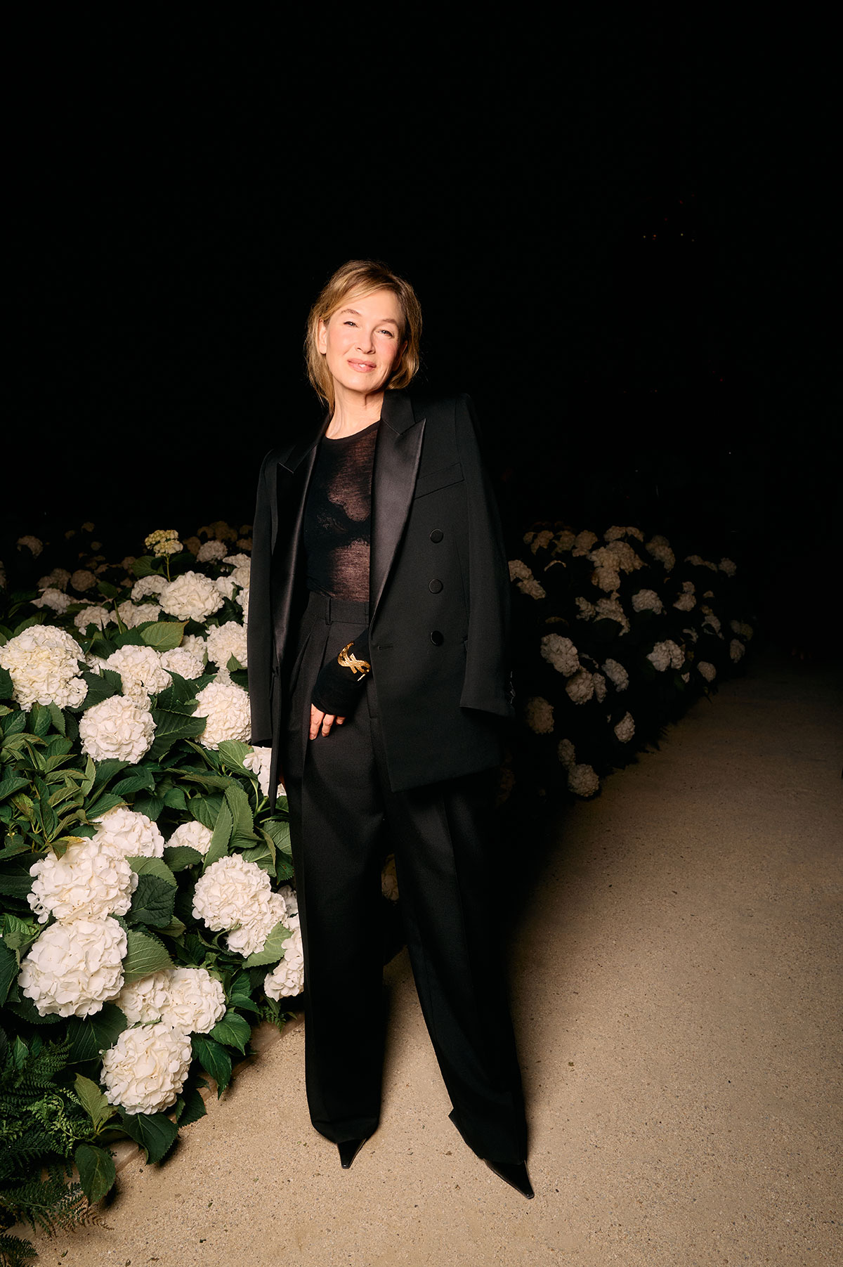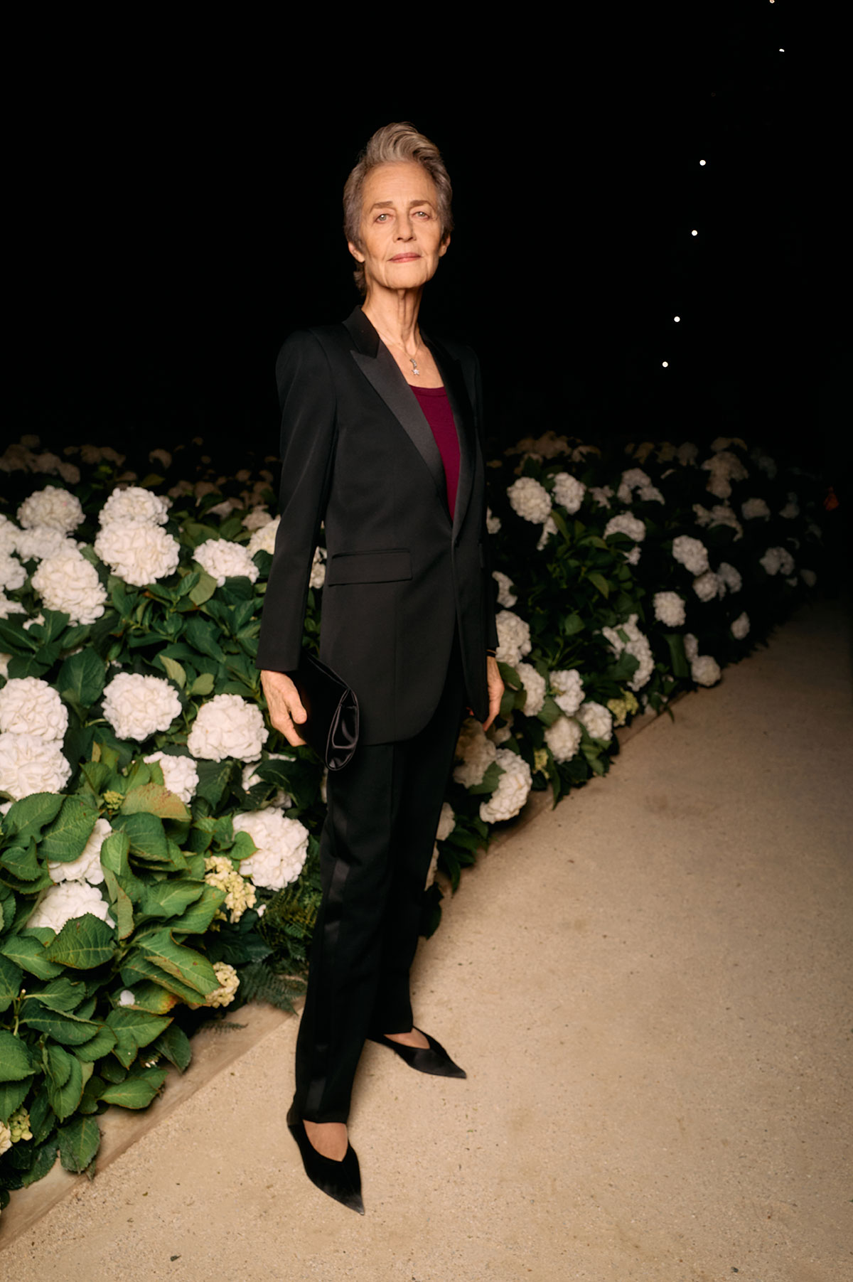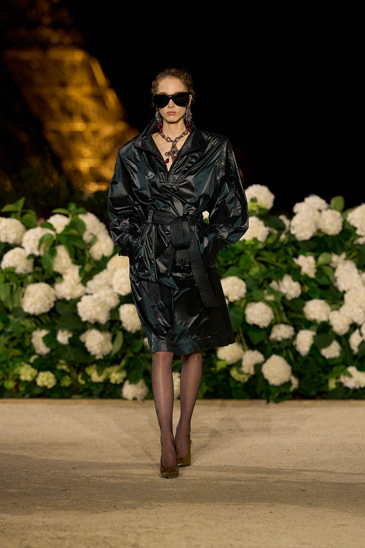 アンソニー・ヴァカレロによる2026年夏ウィメンズコレクションは、ブランドの根幹にある「美学=言語」という理念のもと、スタイルを通じて現代社会における対話や多様性を表現した。煌めくエッフェル塔を背景に、会場のトロカデロ広場には、白いアジサイがYSLのカサンドラロゴをかたどるように飾られ、幻想的なランウェイを演出した。