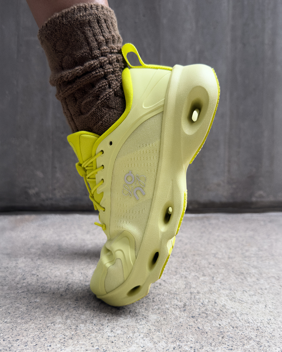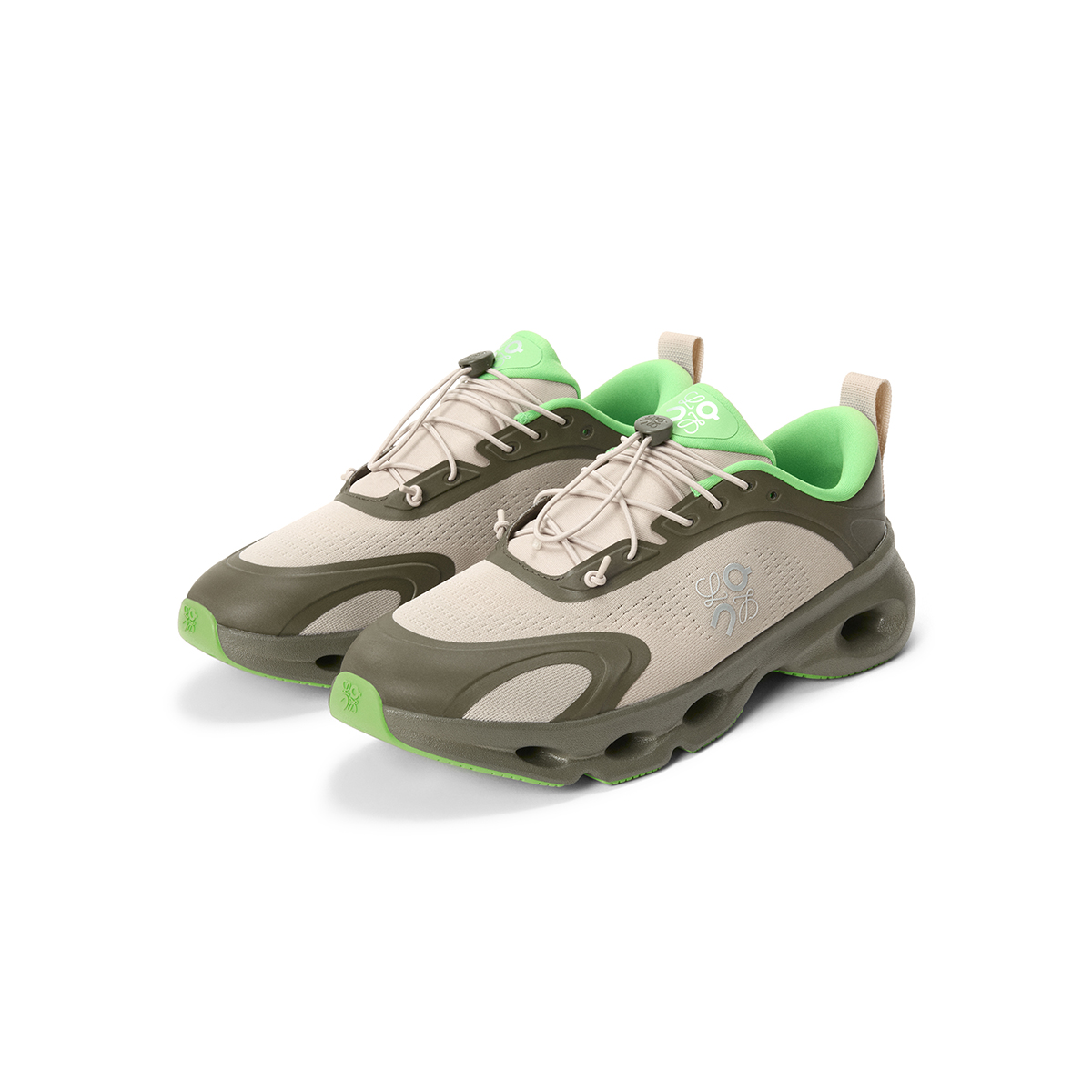 スペインのクラフトマンシップとスイスのエンジニアリングを融合した「クラウドソロ」は、Onの特許技術 CloudTec®をヒール部分に単一搭載した初のモデル。ミッドソールにはヘリオン™スーパーフォームと柔軟性の高いSpeedboard®を採用し、日常の動作に快適なクッション性と軽やかな反発力をもたらす。半透明の糸で織り上げたテクニカルメッシュのアッパーに、ロエベのアイコニックな“ぺブル”をかたどったトグルをプラス。ターコイズやオレンジ、ライムグリーンなど鮮やかなカラーから、洗練されたニュートラルカラーまで豊富に展開する。