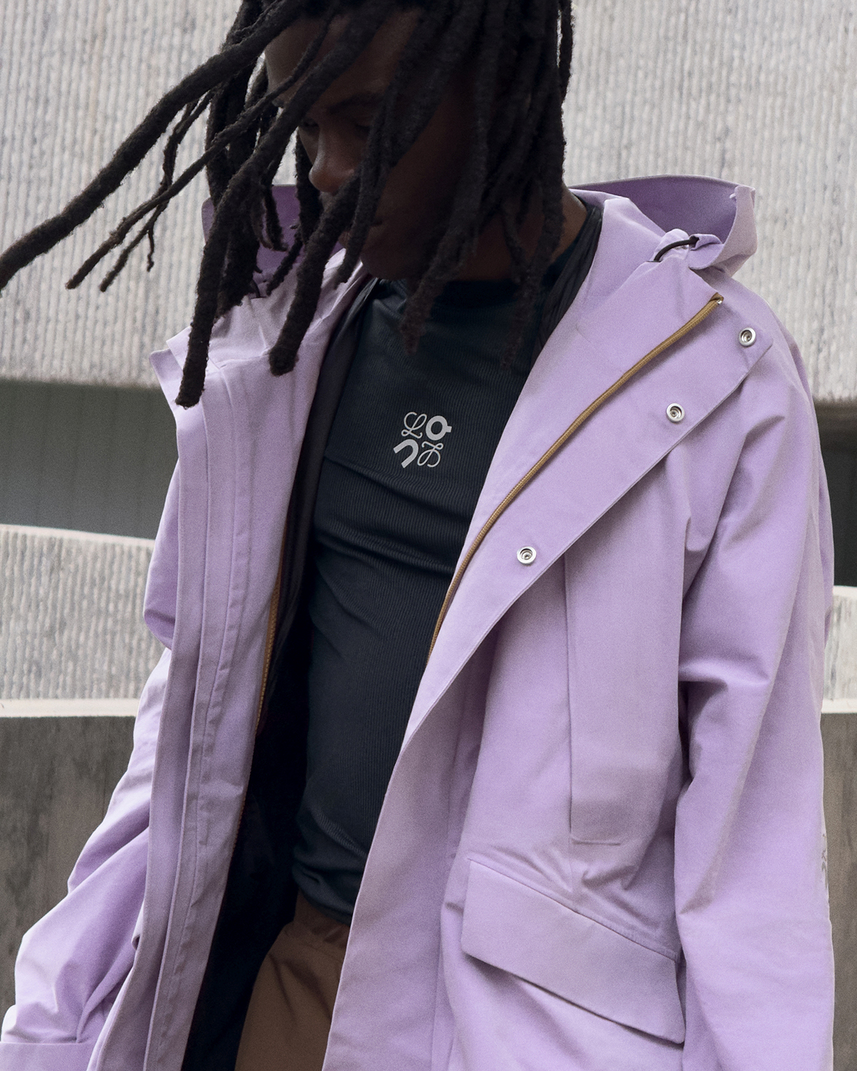 また、人気モデル「クラウドティルト」も、デニムグレーとデニムブルーの新色で登場。さらに今季は、パフォーマンスウェアもラインナップを拡充。フロック加工のアノラックやカーゴトラウザーズなど、都市生活のスピードに寄り添う機能性とラグジュアリーな質感を併せ持つルックが揃う。