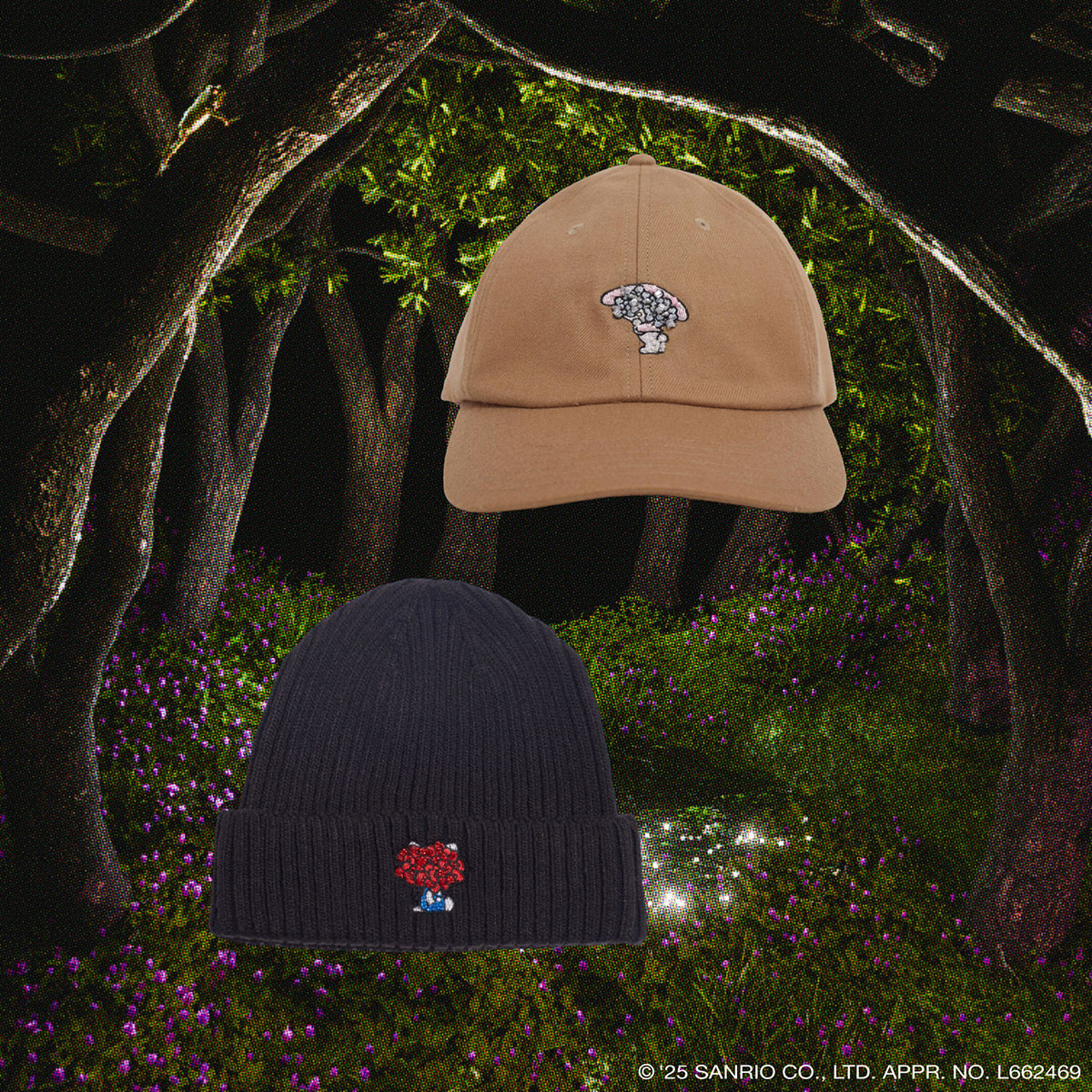 今回は、誕生50周年を迎えた「マイメロディ」と「ハローキティ」にフォーカスし、アンダーカバーオリジナルのグラフィックをビーズ刺繍であしらったウェアをはじめ、ポーチやピンズといった小物からフィギュアまで、幅広いアイテムをラインナップ。