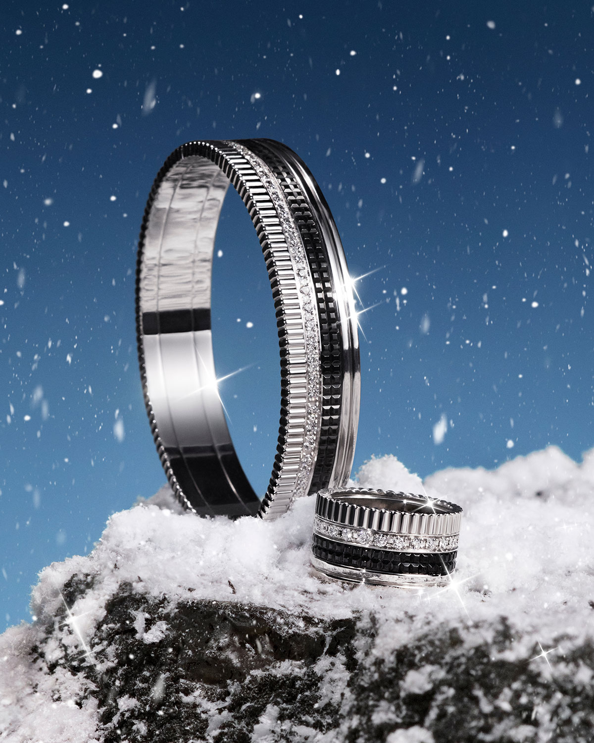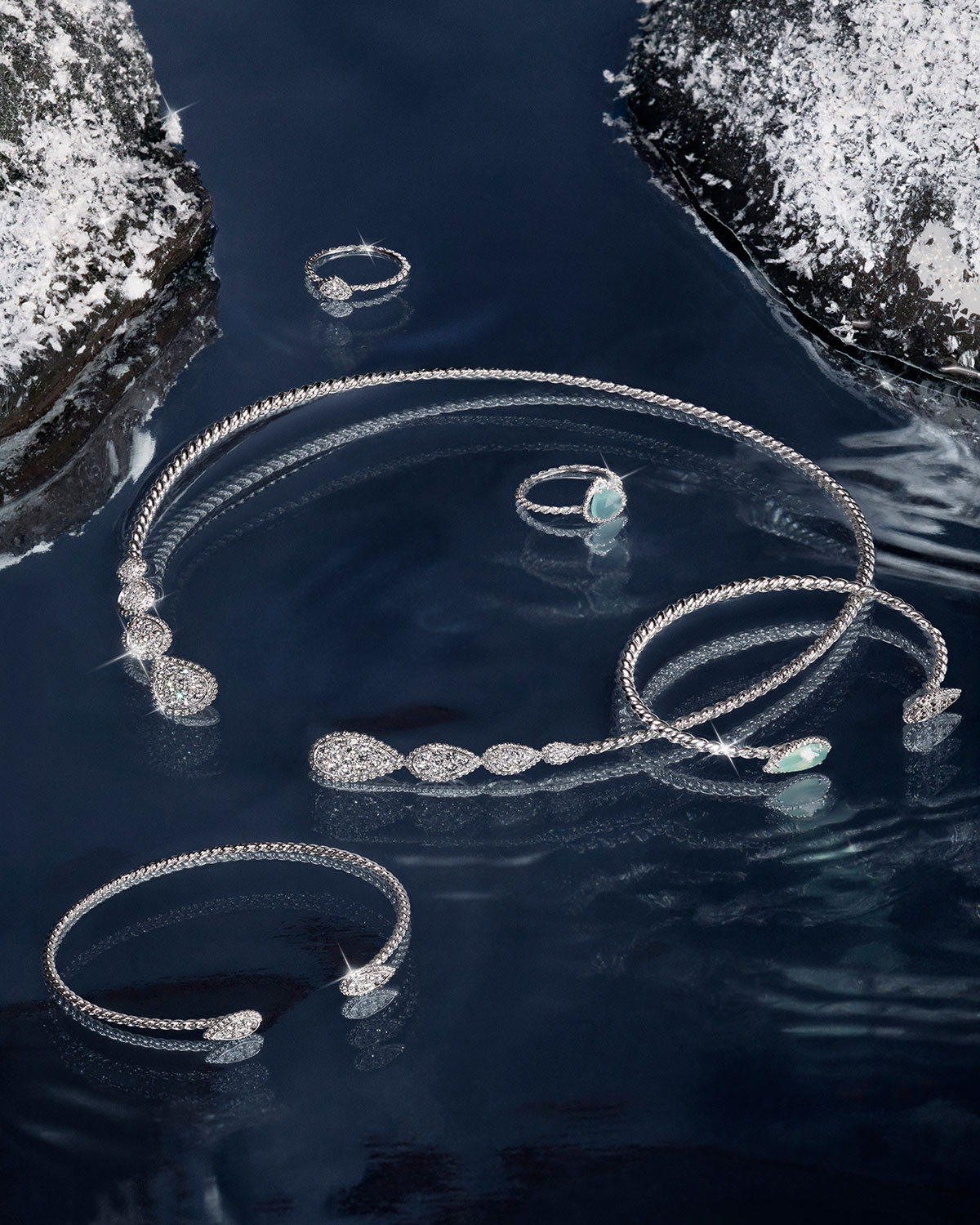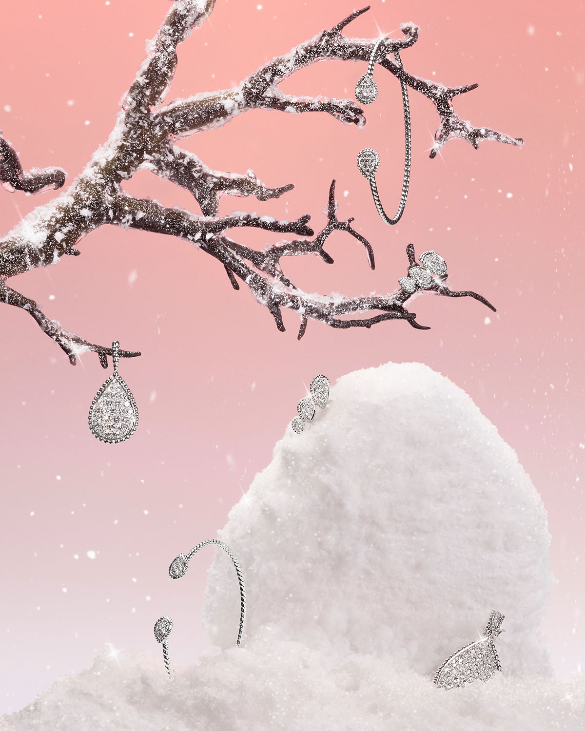 「WINTER WONDERLAND」をテーマにした本グローバルキャンペーンでは、凍てつく銀世界や幻想的な砂漠を舞台に、アンバサダーたちがメゾンを象徴するアイコンジュエリー「キャトル」、「セルパンボエム」、「プリュム ドゥ パオン」を纏って登場。夢のようなワンダーランドに足を踏み入れた彼女たちは、ジュエリーのまばゆい輝きに心奪われていく。