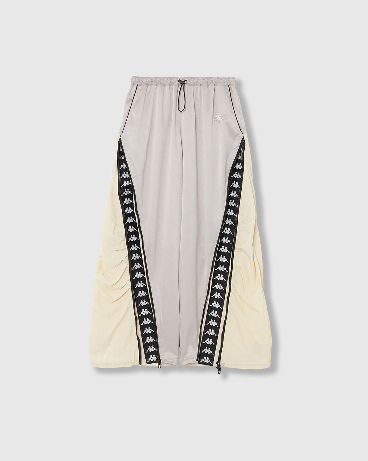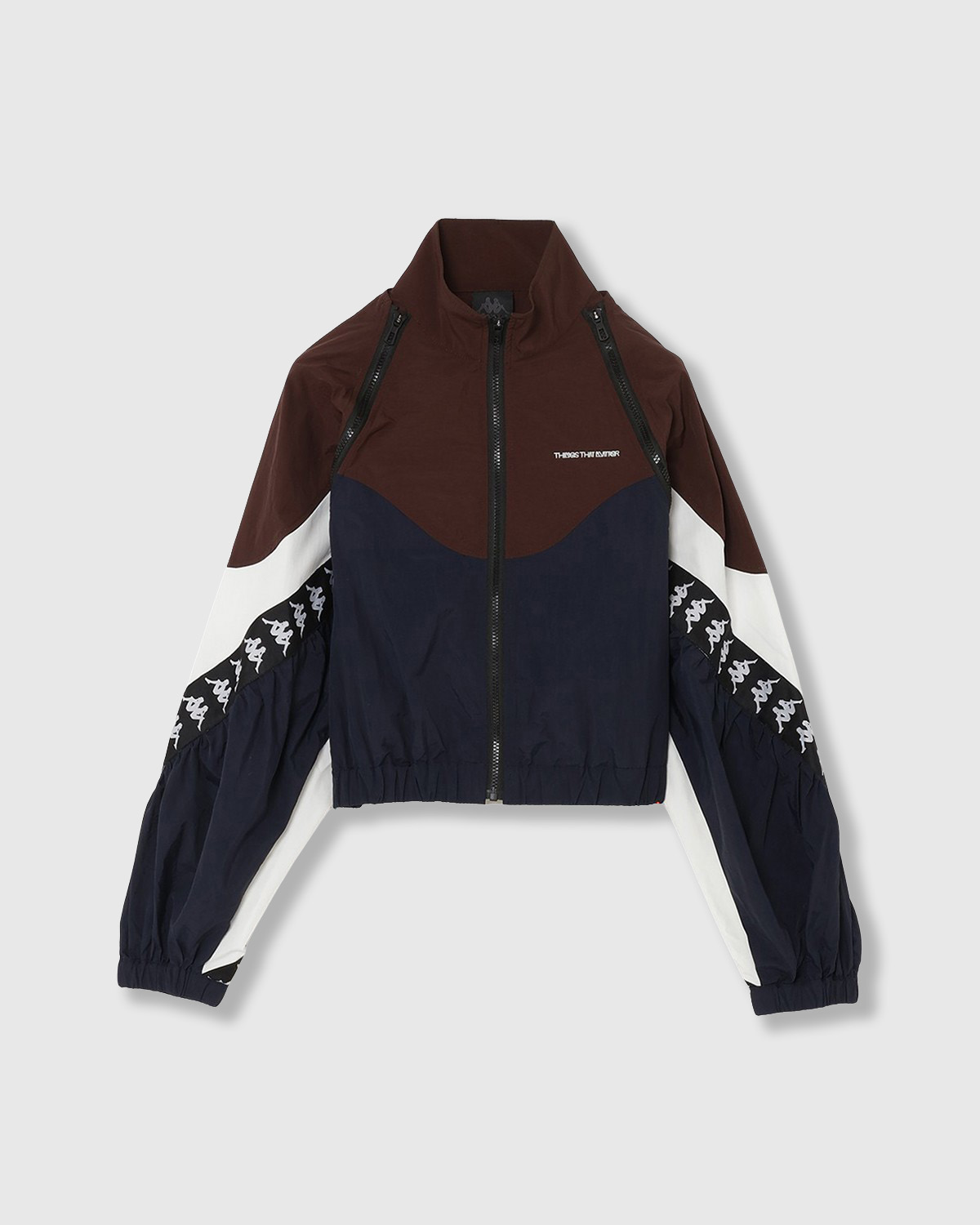 カッパが持つスポーツウェアの機能性とTHINGS THAT MATTERのアイコニックなシルエットやエッセンスを融合し、トラックジャケットやカッパ、ナイロンパンツ、スカート、トップなどを展開する。⼀部のアイテムには撥⽔素材を採⽤しており、機能性とデザイン性を兼ね備えたアイテムに仕上がっている。