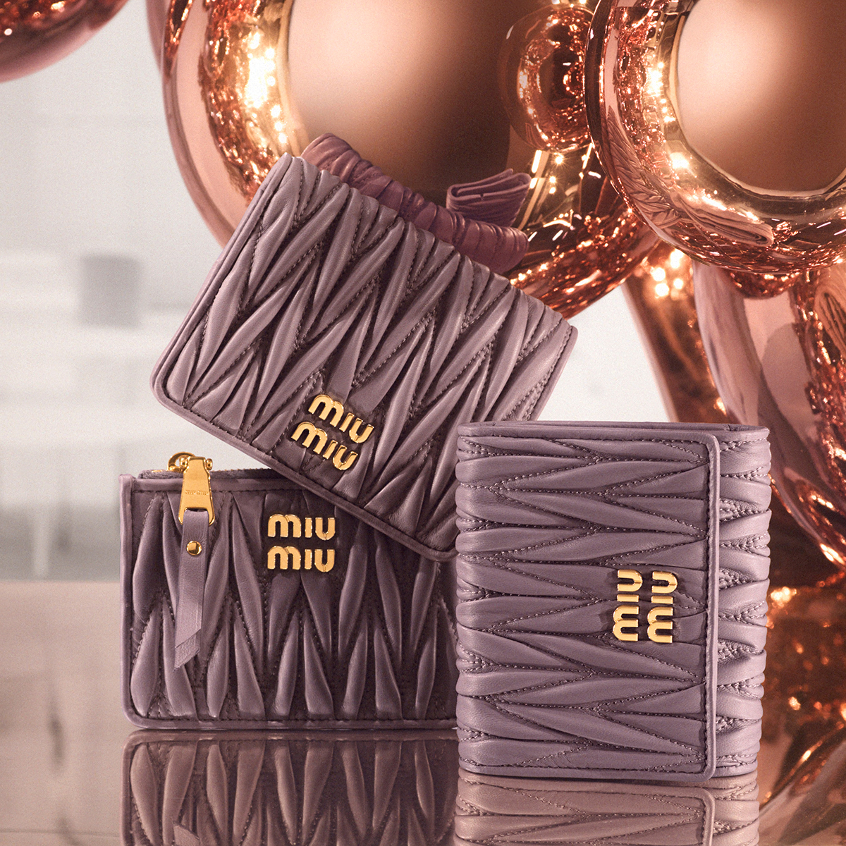 ミュウミュウ(Miu Miu)から、ホリデーシーズンを彩るスモールレザーグッズコレクションが登場。日本限定デザインを含む新作がラインナップし、洗練されたカーフスキン、アイコニックなマテラッセレザー、ナッパレザーを使用した上質なアイテムが揃う。