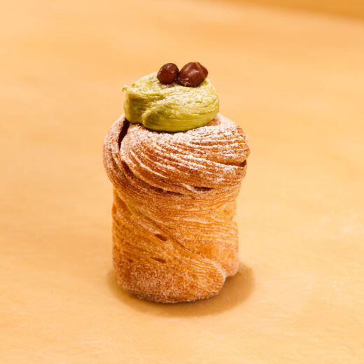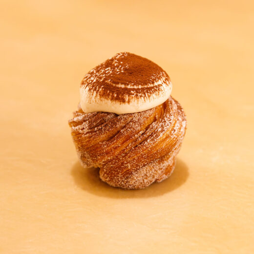 まるでソフトクリームのようなビジュアルの「トロワ(TROIS)」。クロワッサン生地に最後までたっぷりクリームが詰まった驚きの新スイーツ。テイクアウト可能なので、食べ歩きにもピッタリ。